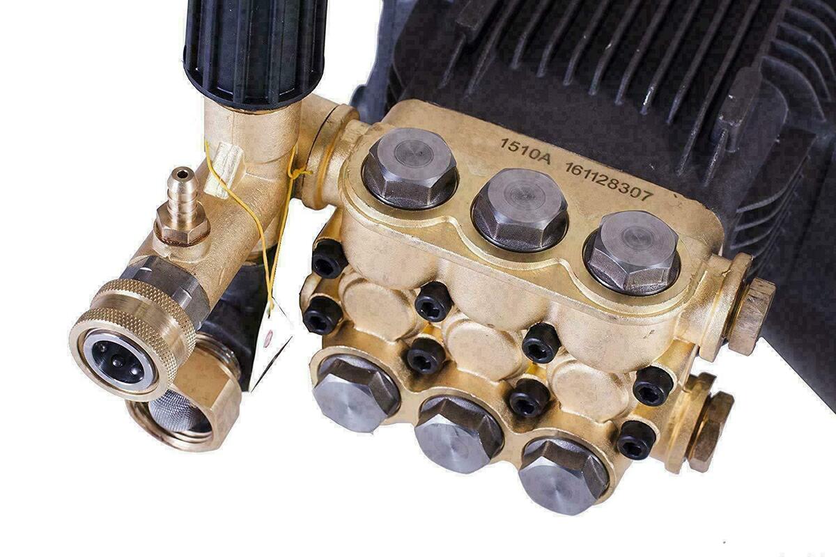 This pressure washer pump has a forged brass manifold, providing corrosion resistance.