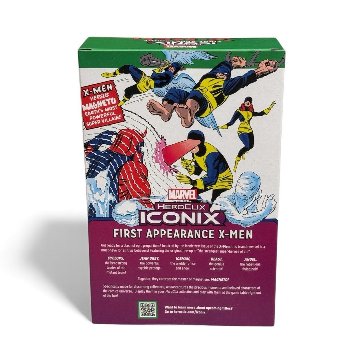 Marvel HeroClix ICONIX First Appearance X-Men set featuring Cyclops, Jean Grey, Iceman, Beast, Angel, and Magneto.