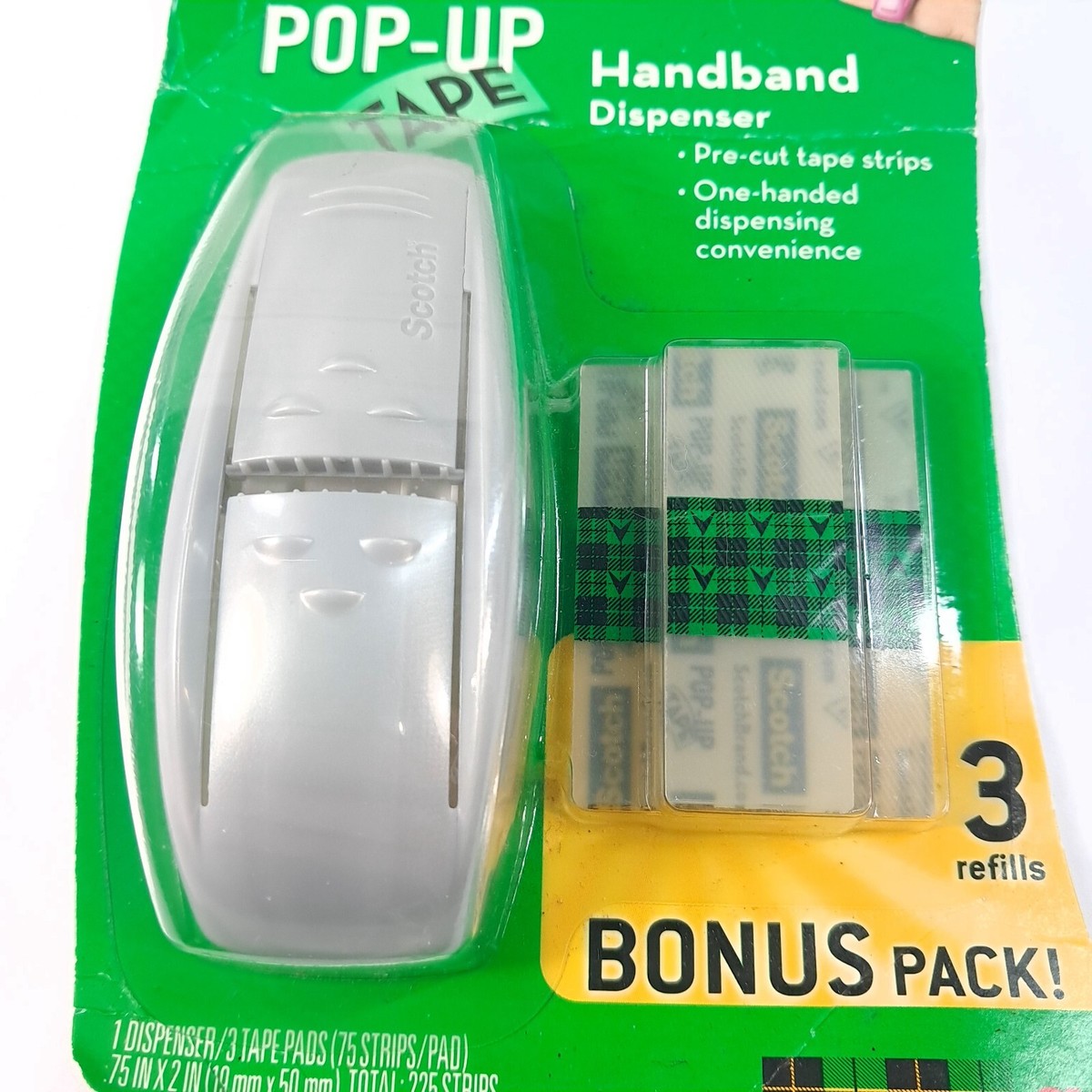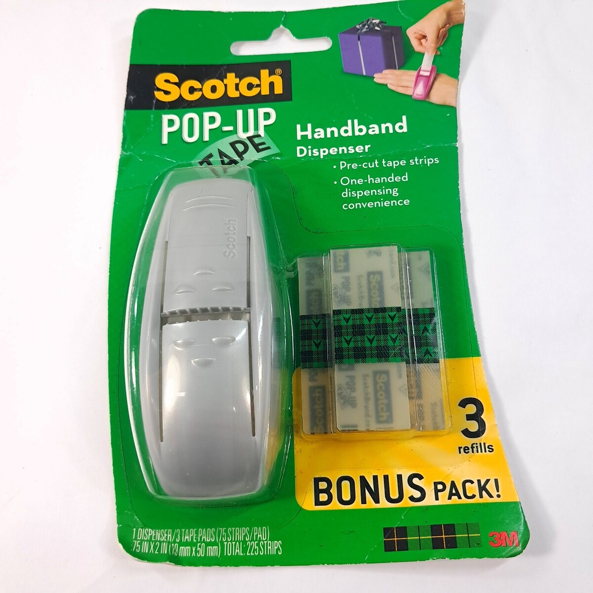 - NEW Scotch Pop-Up Hand Dispenser handband 225 Tape Strips refill 3M gray silver