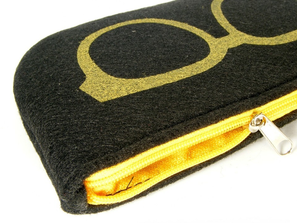 - NEW Soft Strong Felt BLACK /YELLOW Case w/ Zipper for all Sunglasses Eyeglasses