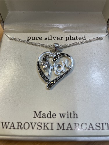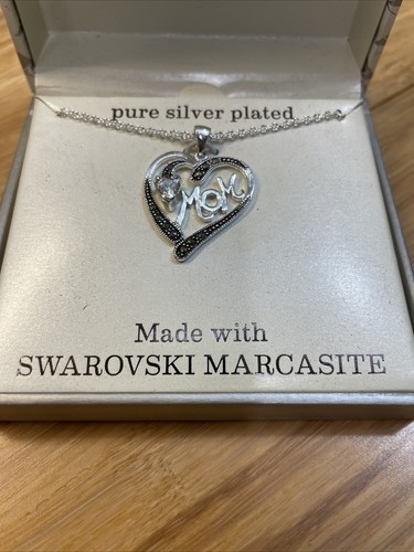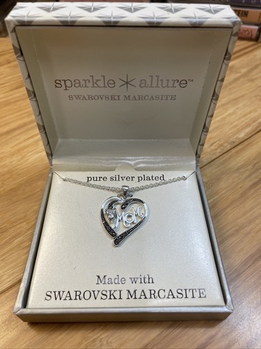 - NEW Sparkle Allure Swarovski Marcasite Mom Silver Plated Pendant Necklace KG JD
