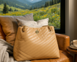 - NEW Tory Burch Kira Chevron Desert Dune Beige Leather Chain Strap Large Tote Bag