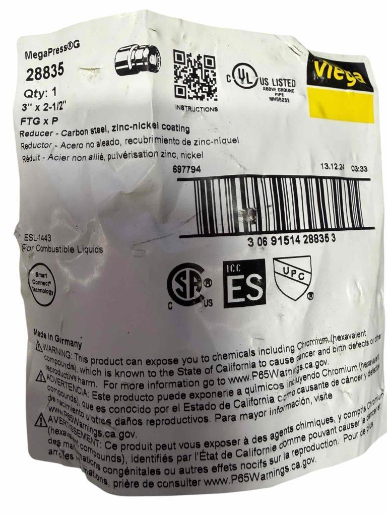 - NEW Viega MegaPress G 28835 3" x 2-1/2" FTG x P Reducer Carbon Steel