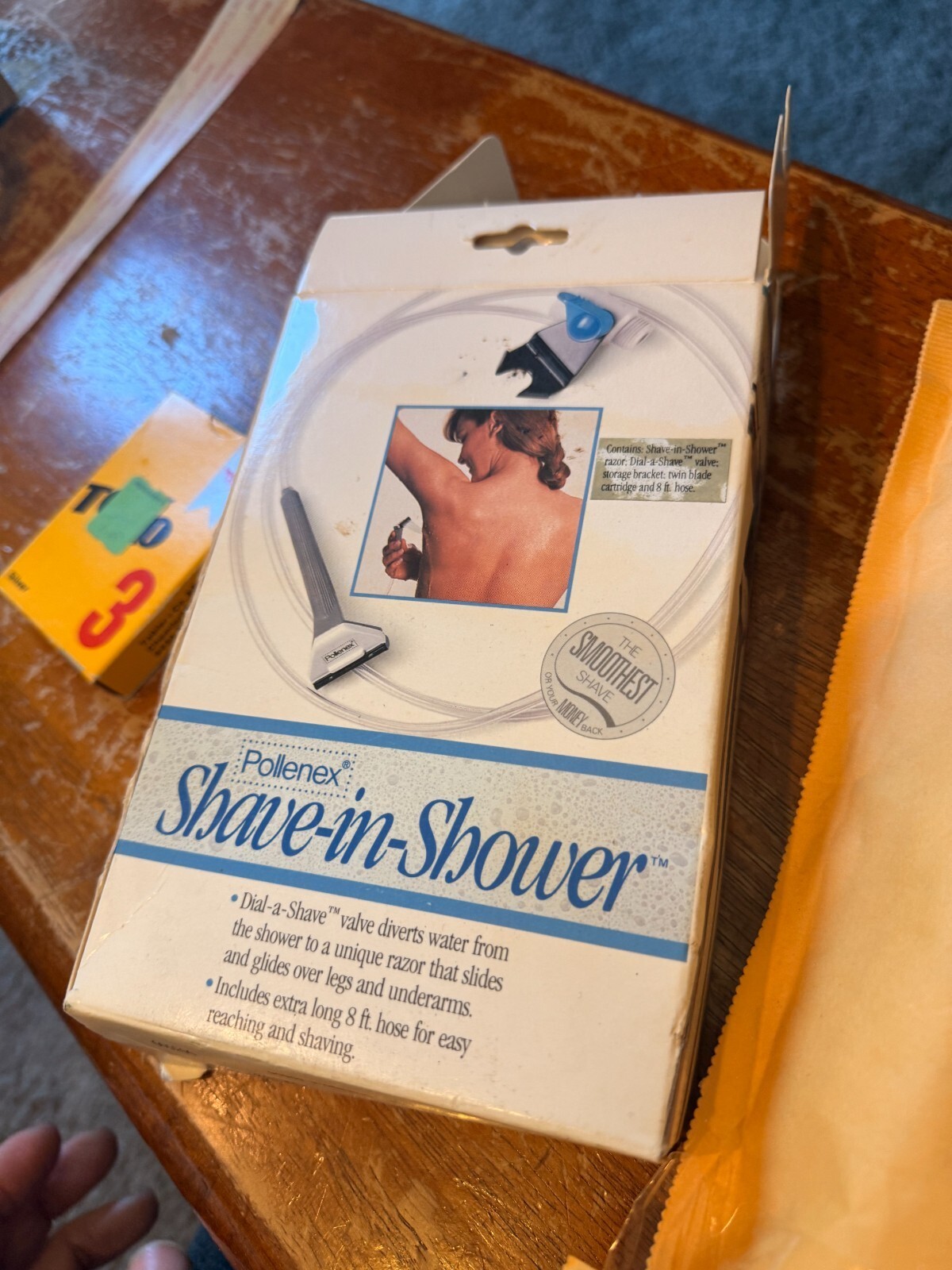 - NEW Vintage 1990 Pollenex Ladies Shave-In Shower Combo w/ hose Box razor LS7BK