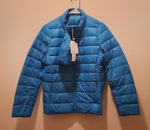 - NEW, Women’s Blue Hooded Lightweight Down Jacket (S)