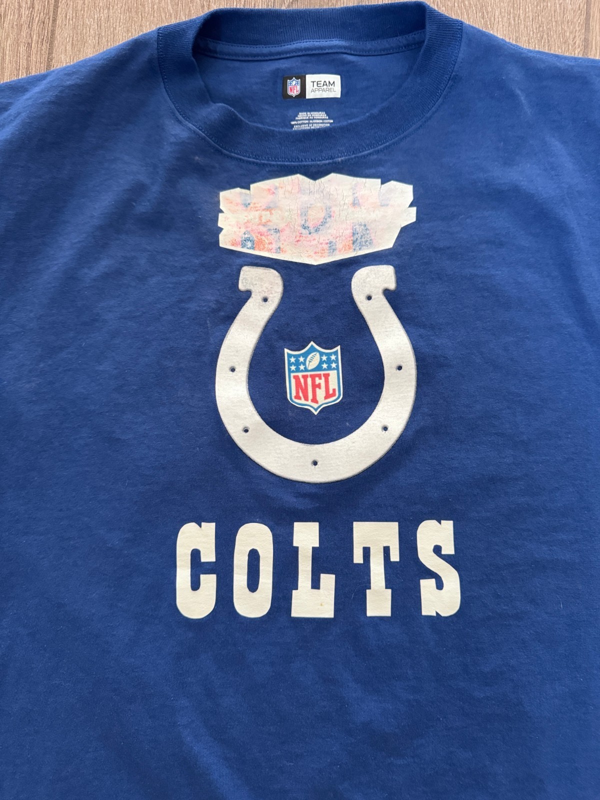 - NFL Indianapolis Colts Super Bowl Cotton T Shirt Manning 18 sz L w/Defect