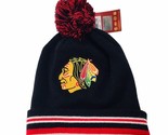 - NHL Chicago Blackhawks Big Logo Mitchell & Ness Knit Blk Red Beanie Pom Pom Hat