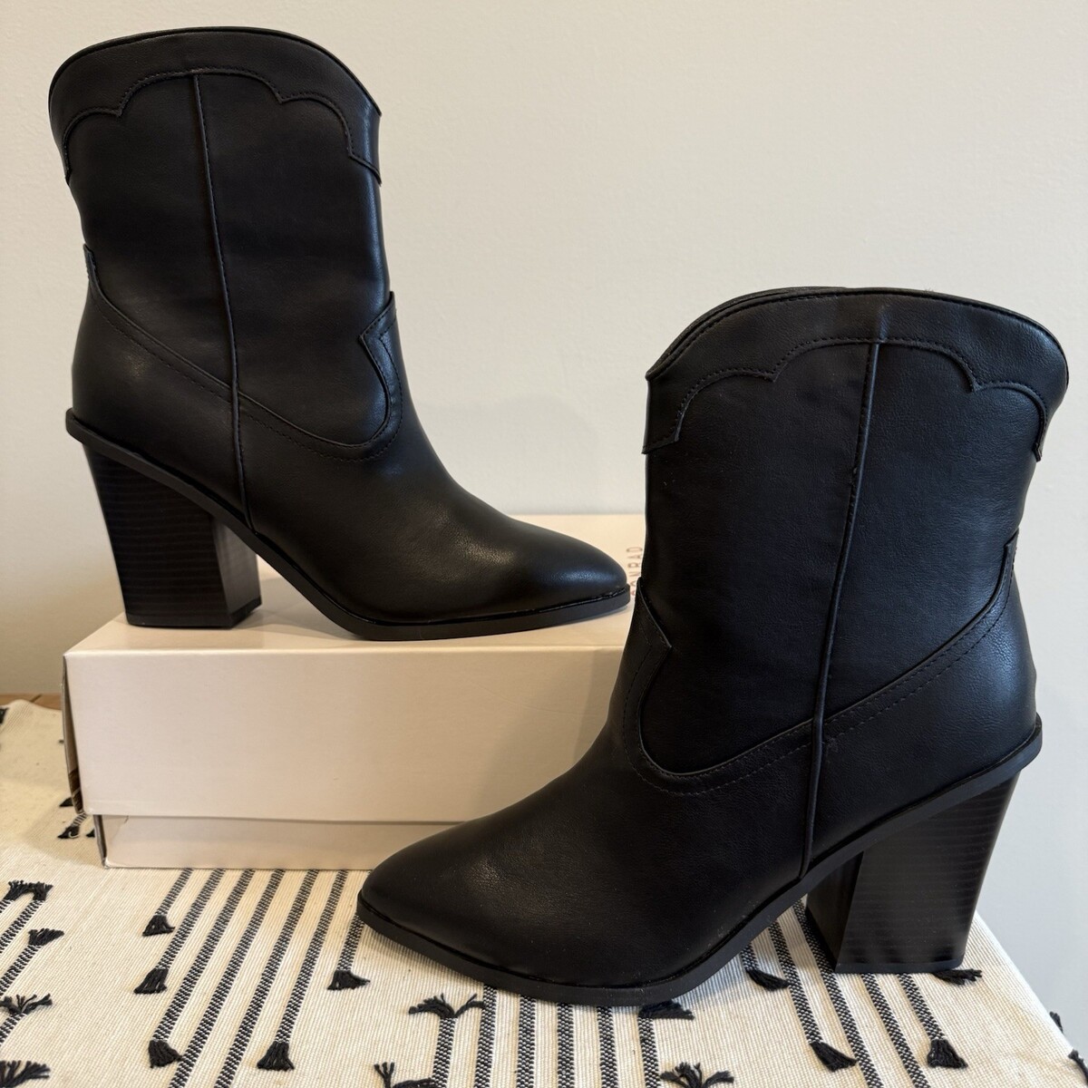 - NIB Lauren Conrad Maxilla Black Western Ankle Boots Women's 9.5 Memory Foam Read