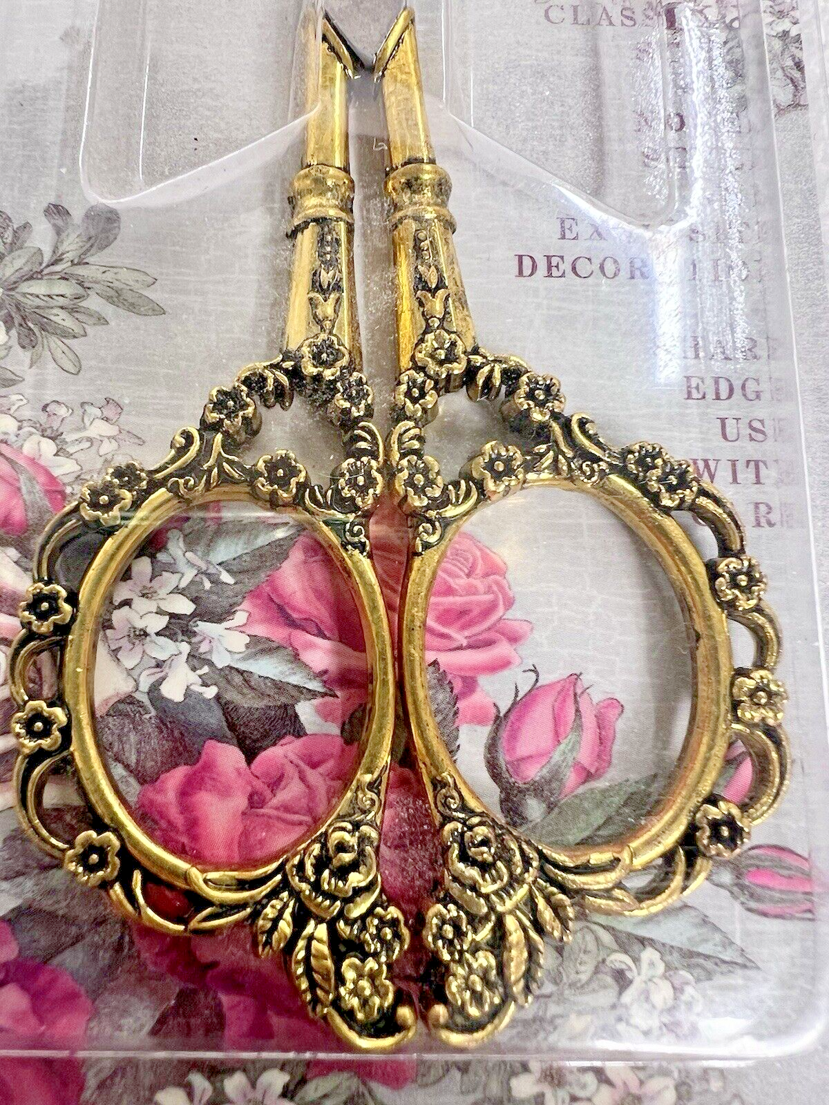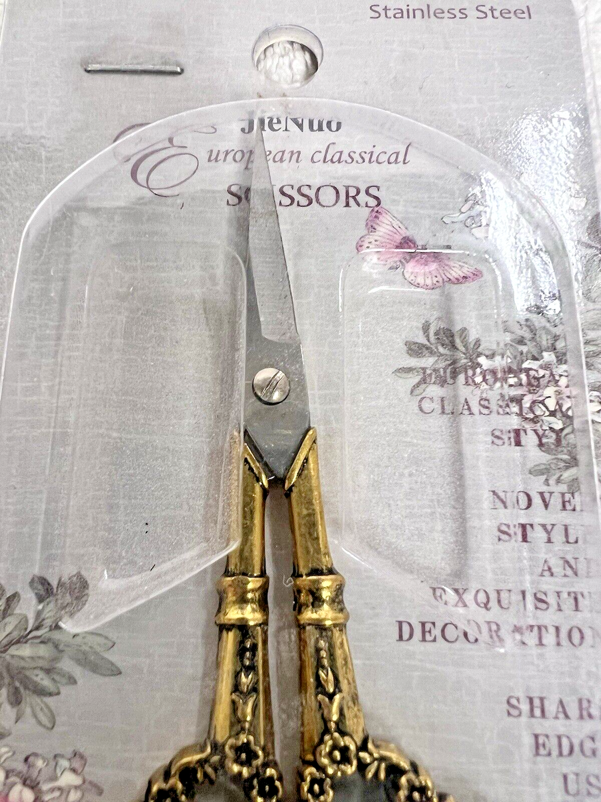 NIP Jie Nuo Floral Embroidery Scissor European Classical Never Used Gold Tone New in package