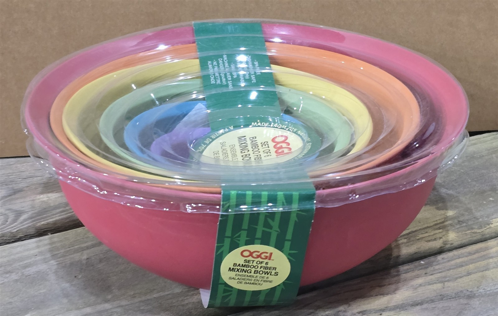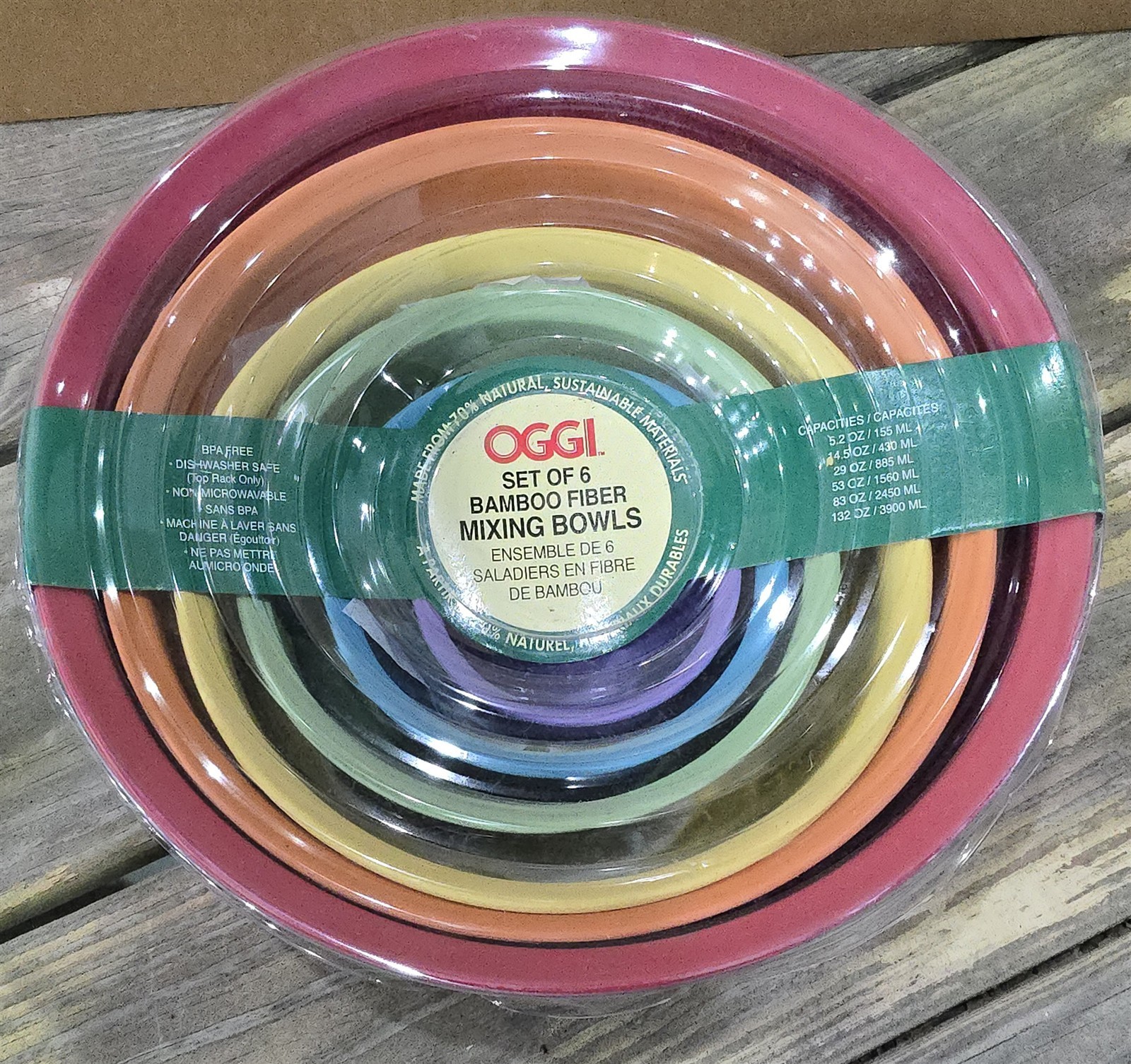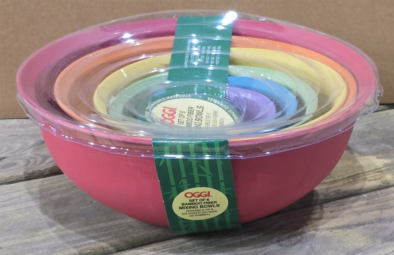 - NIP NEW 6 OGGI Bamboo Fiber Mixing Bowls Set Rainbow Colors 5.2-132 Ounce Size