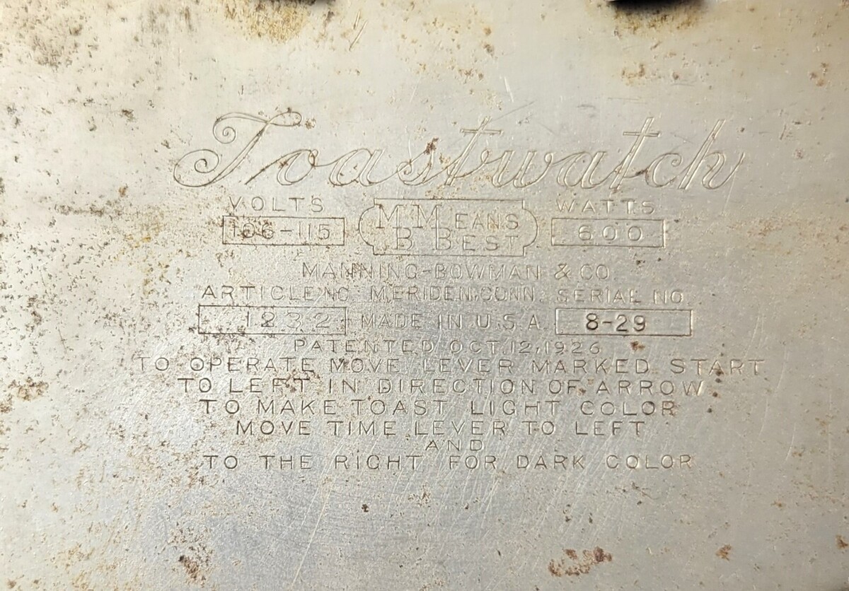 - NON-WORKING Antique Manning-Bowman & Co. ToastWatch Electric Toaster