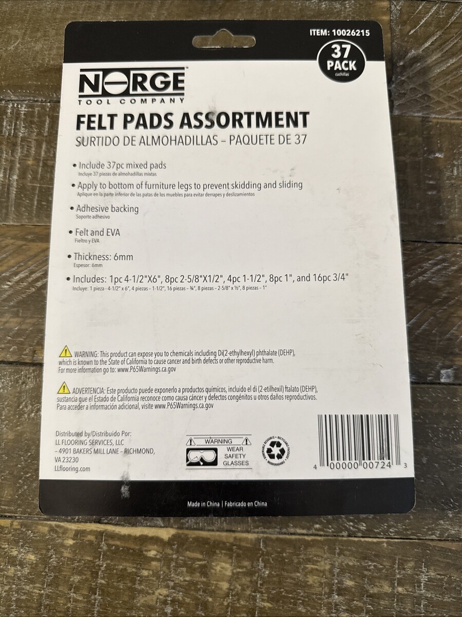 The NORGE Felt Pads Assortment comes with 37 brown felt glides, perfect for protecting floors and furniture from scratches and damage. Made by the brand Norge, these felt pads are designed to provide a soft and gentle cushioning effect, ensuring that your furniture moves smoothly and quietly. Ideal for use on the bottom of chairs, tables, or any other furniture that might scratch or damage surfaces, this assortment is a convenient and practical addition to any home.