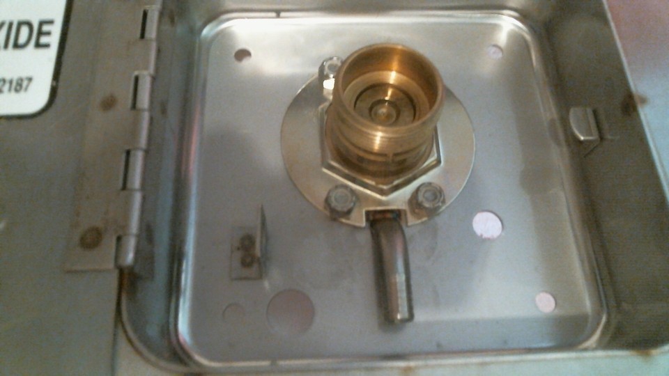 The vintage high schools around here are all undersized so they have to add cheap out-buildings for some of the classes. I don't know how they heat them but the cooling is accomplished by pumping in CO2 from a central compressor and this is one of the connection boxes for such an out-building. Comes with the keys, without which you cannot open it. New and unused construction surplus and I suspect they go for a small fortune, a lot more than we are asking. Stainless steel steel box with a brass fitting.