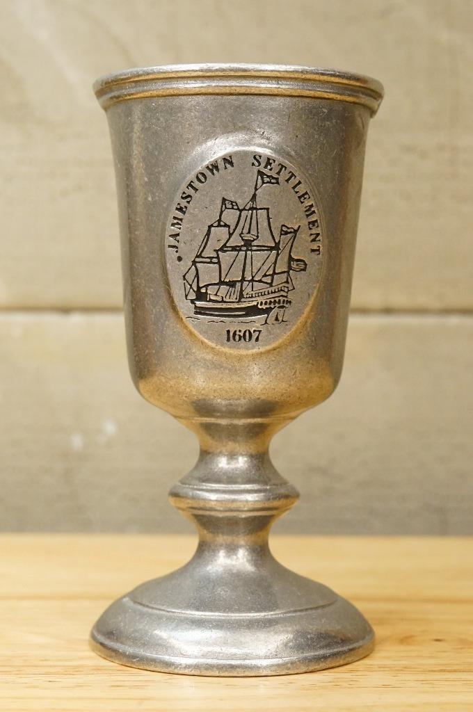 - NOS Pewter Metalware NOS Jamestown Settlement 1607 Ship Footed Goblet 7.25"