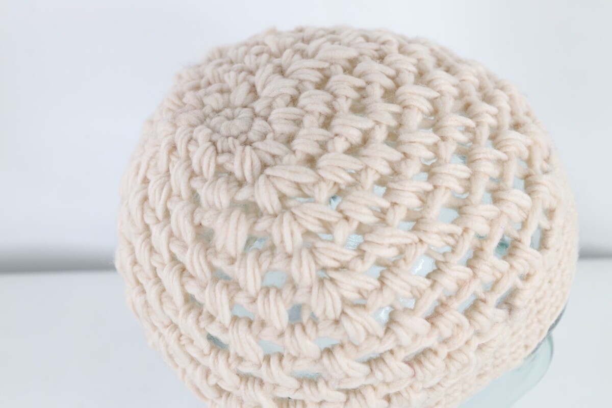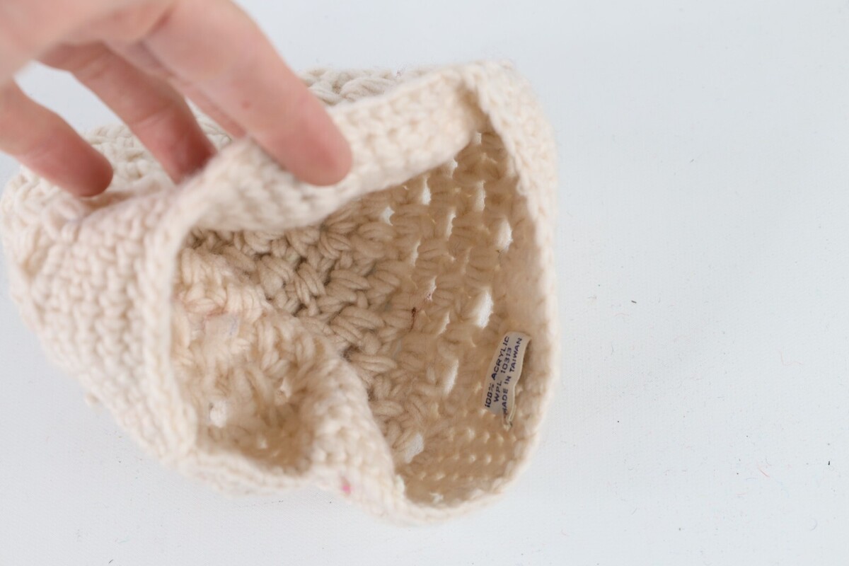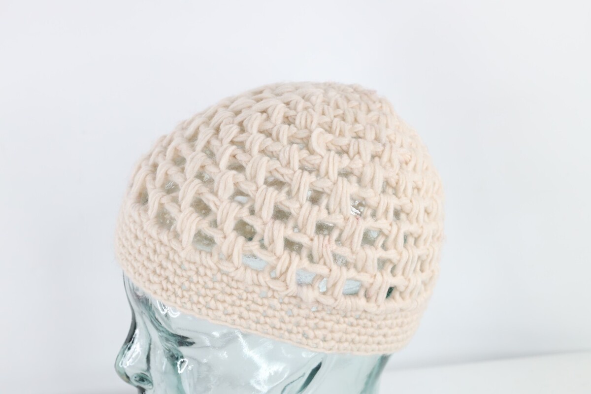 NOS Vintage 70s Streetwear Lace Crochet Knit Beanie Hat Off White Womens OS
