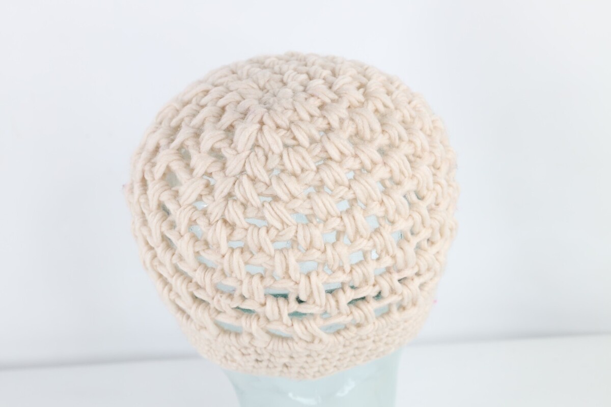 - NOS Vintage 70s Streetwear Lace Crochet Knit Beanie Hat Off White Womens OS