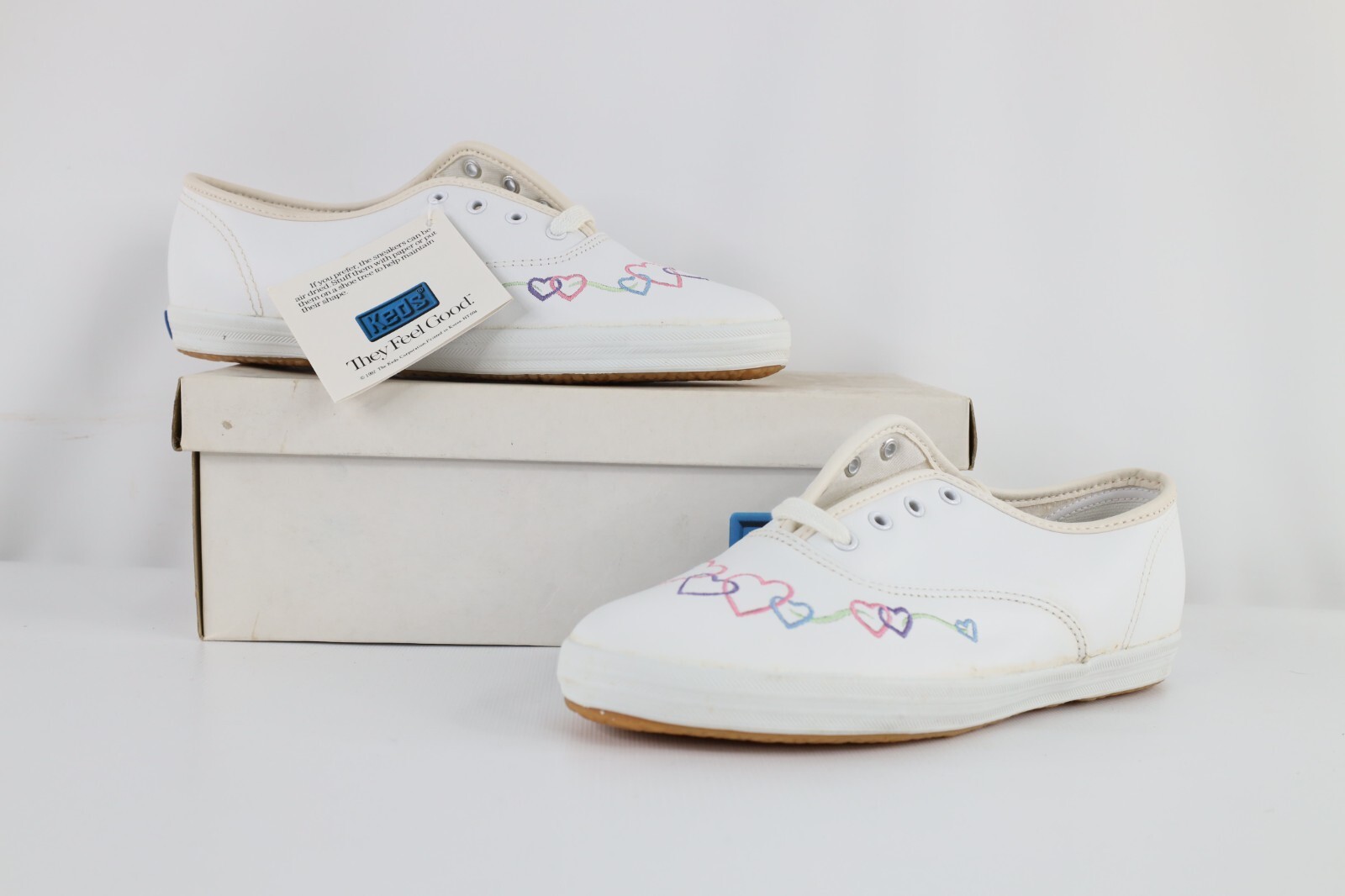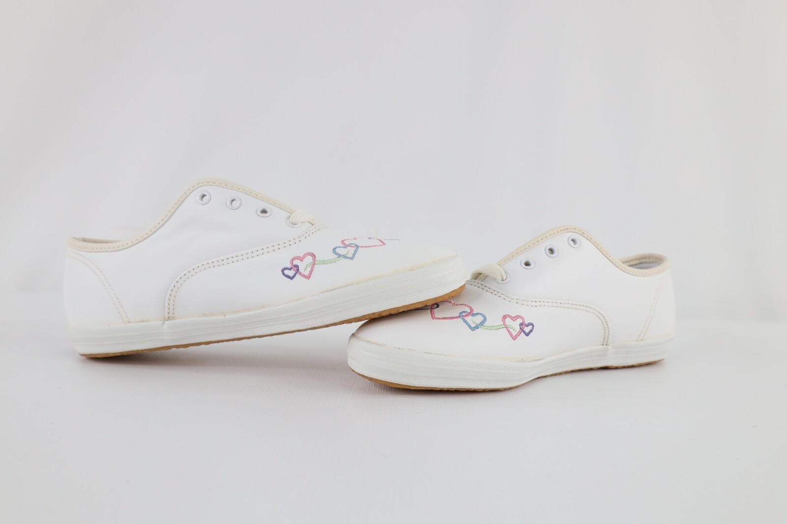 - NOS Vintage 90s Keds Youth Size 4Y Heart Lace Up Leather Shoes Sneakers White