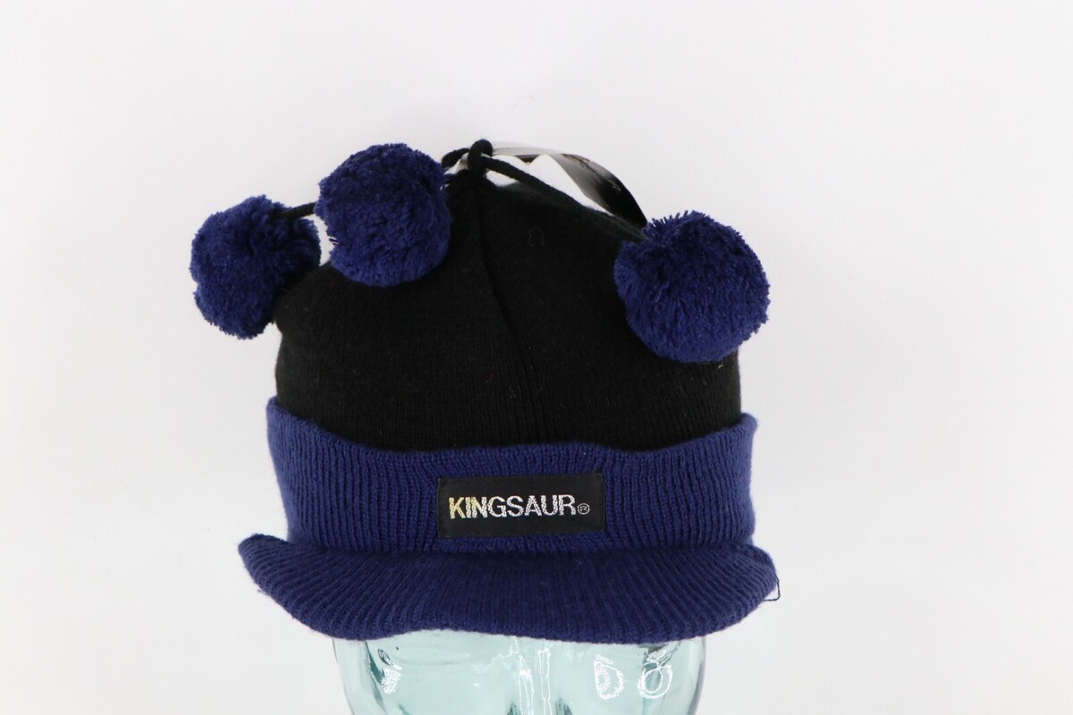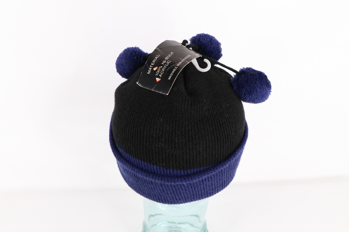 NOS Vintage 90s Streetwear Youth Brimmed Pom Knit Winter Beanie Hat Cap Black