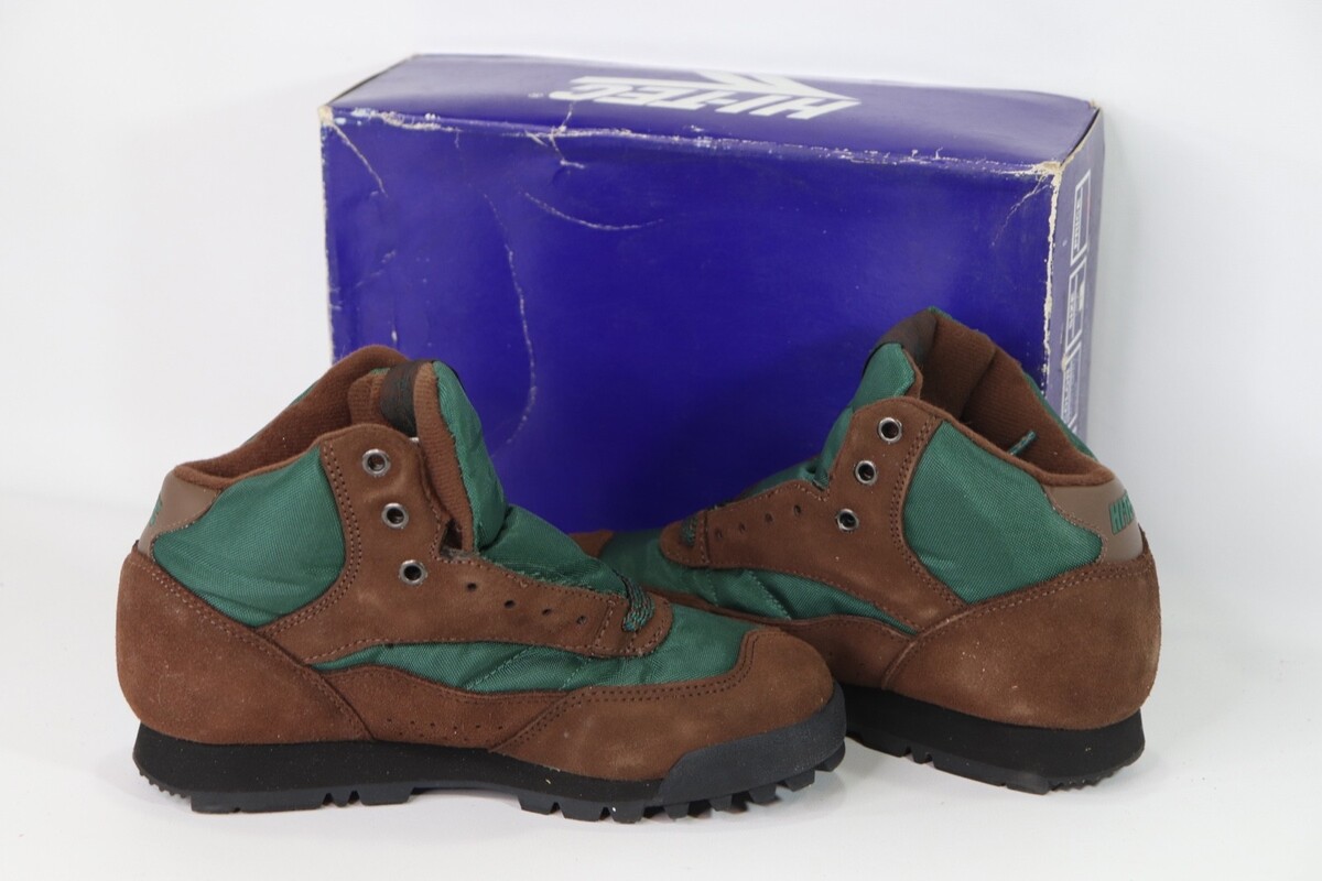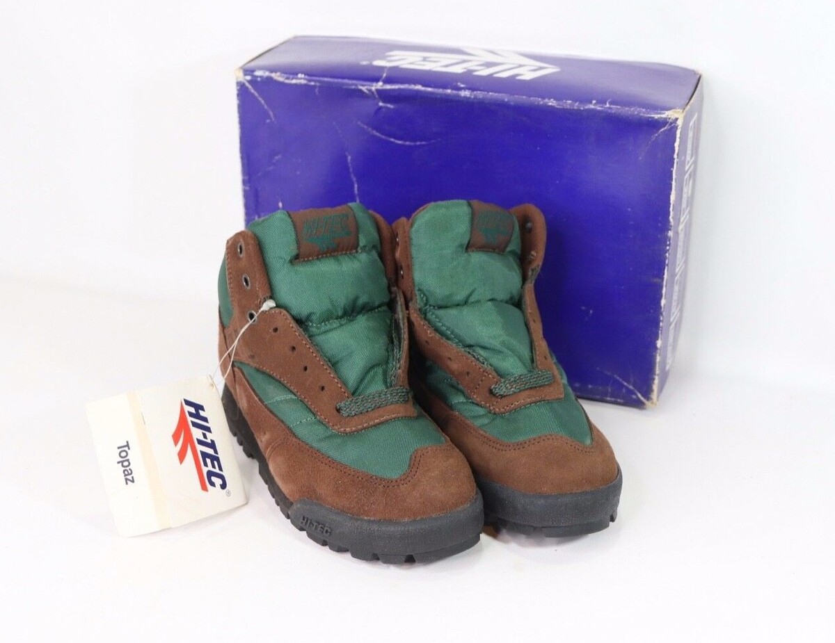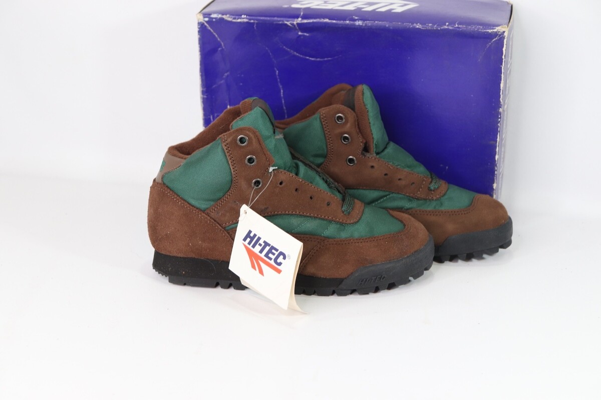 - NOS Vintage 90s Youth Size 2Y Suede Leather Hiking Trail Boots Chukkas Brown