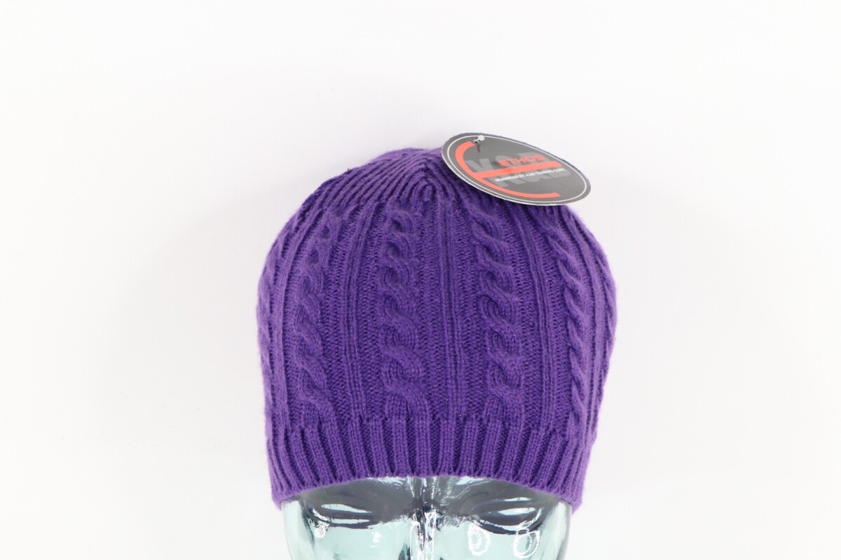- NOS Vintage Streetwear Blank Chunky Cable Knit Winter Beanie Hat Purple Womens