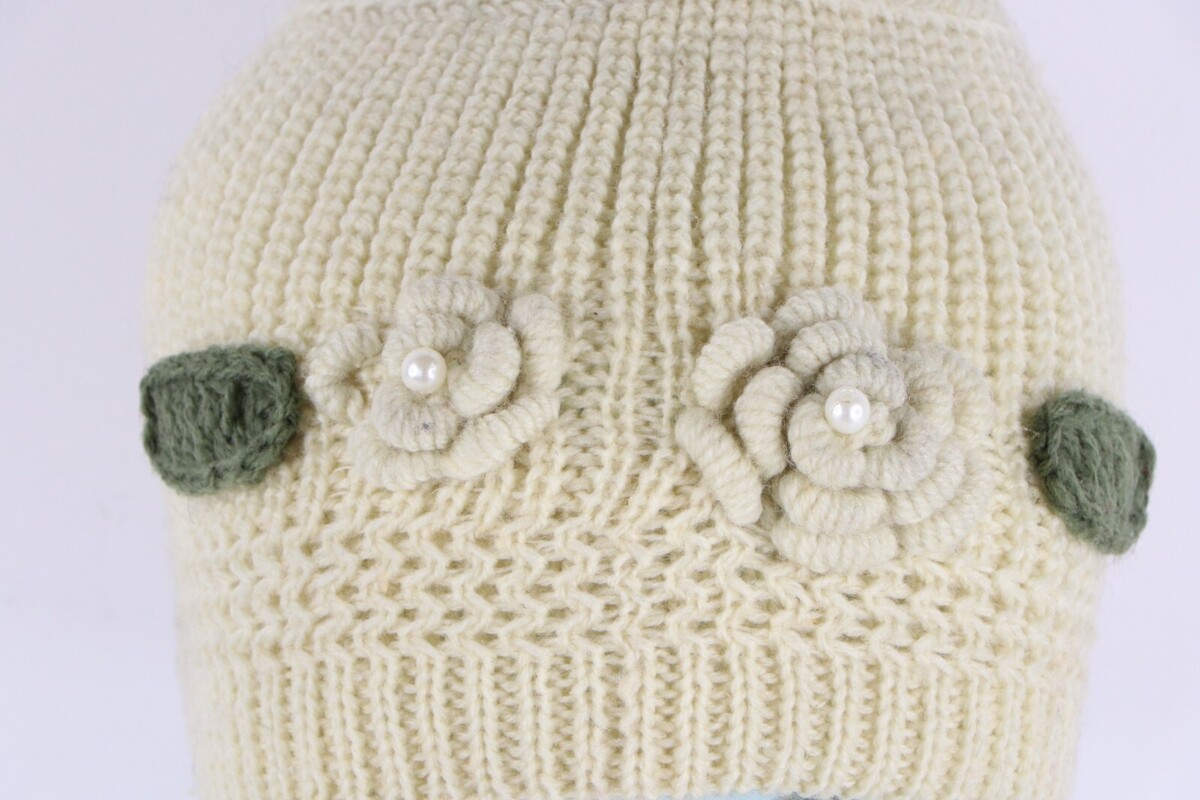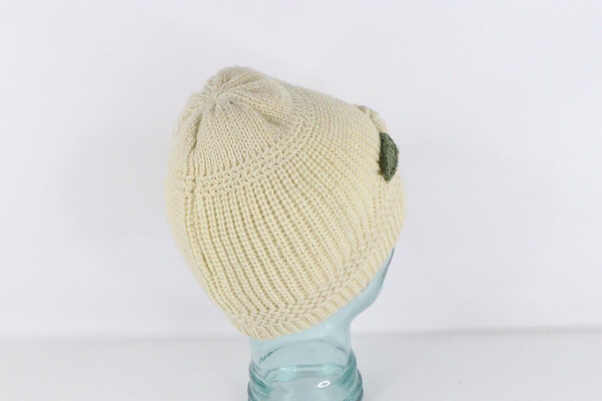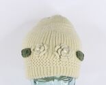 - NOS Vintage Streetwear Chunky Double Faced Floral Winter Beanie Hat Cap Beige