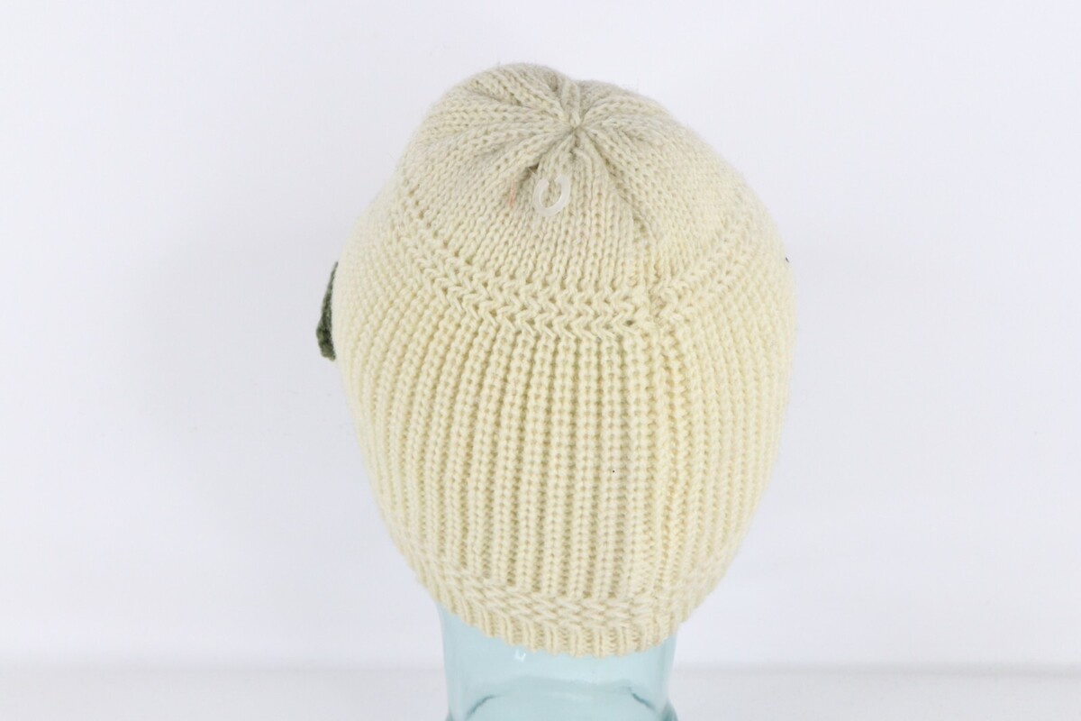 NOS Vintage Streetwear Chunky Double Faced Floral Winter Beanie Hat Cap Beige