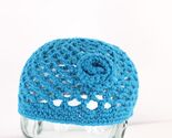 - NOS Vtg 70s Streetwear Crochet Wool Knit Flower Skull Beanie Hat Blue Womens OS