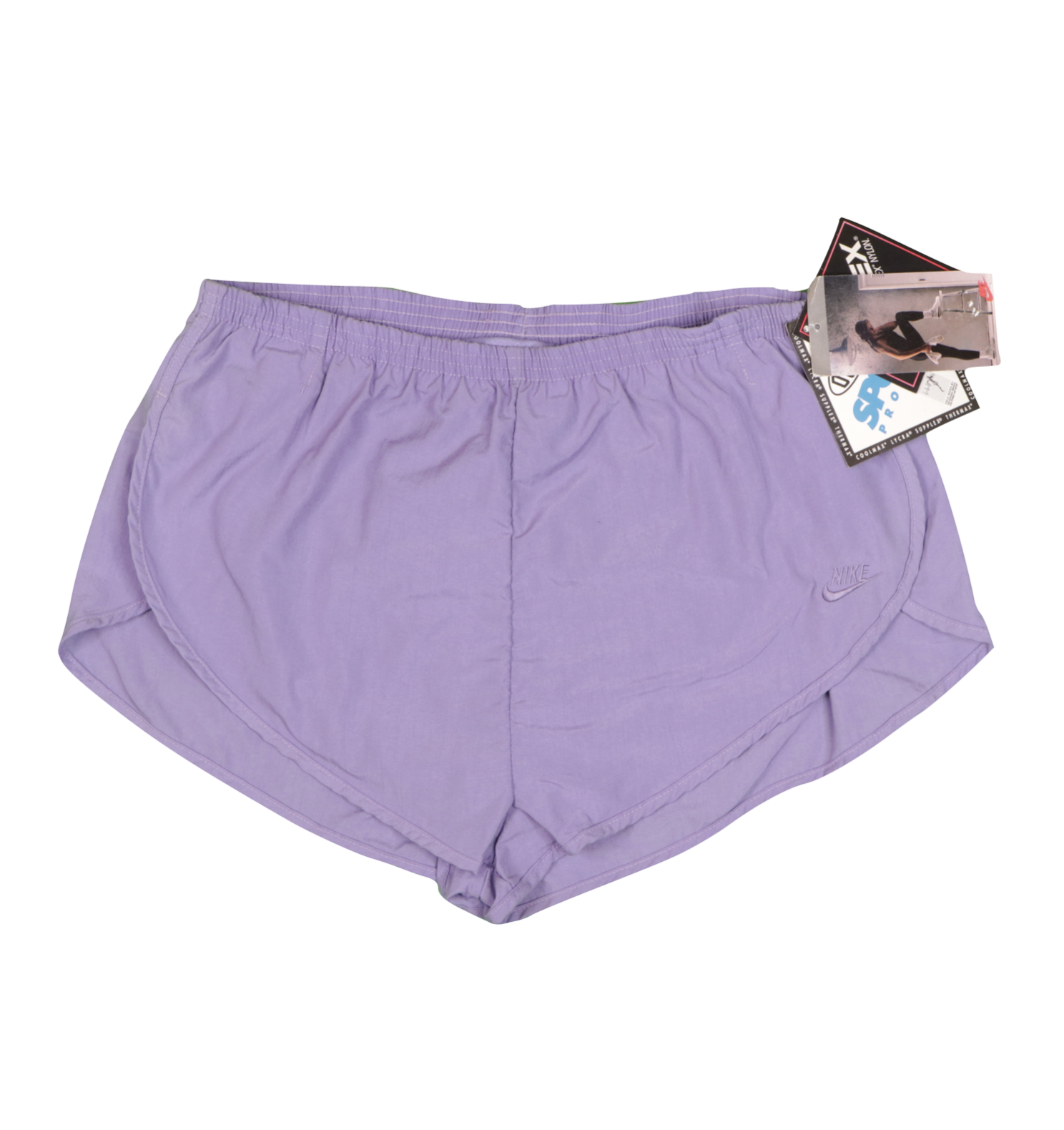 NOS Vtg 90s Nike Womens Large Spell Out Lined Nylon Jogging Running Shorts Lilac