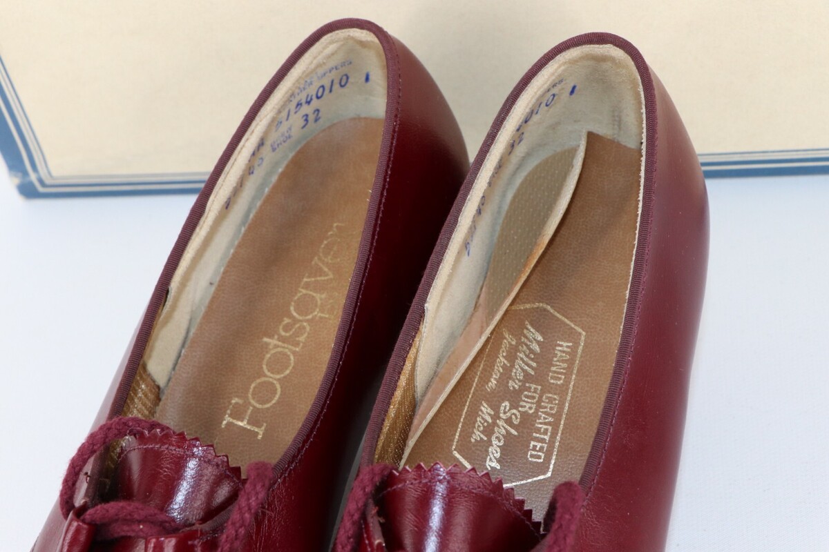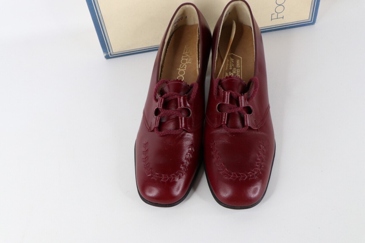 NOS Vtg 90s Streetwear Womens 7.5 AA Chunky Heel Braided Leather Shoes Wine USA