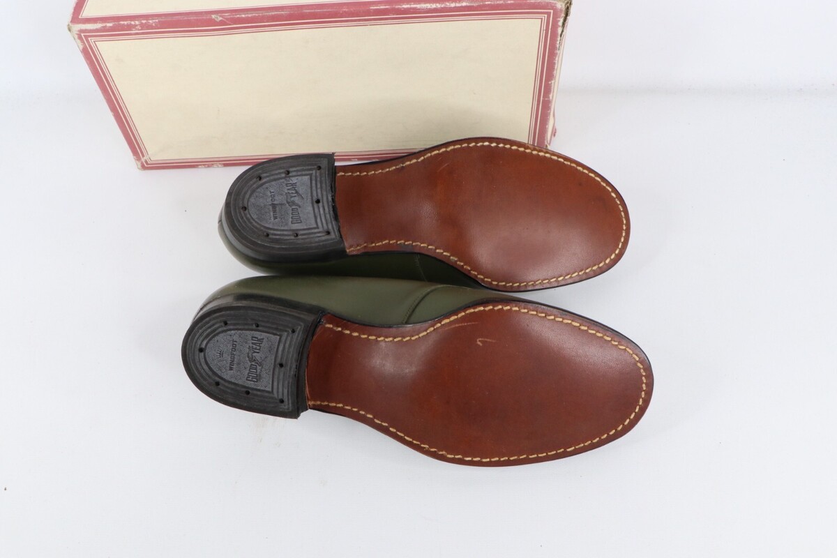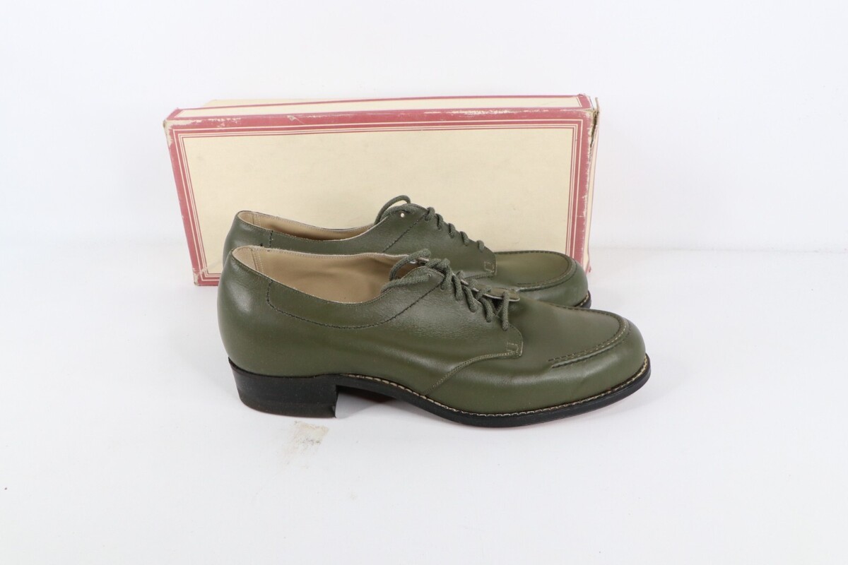 NOS Vtg 90s Streetwear Womens 7 EE Chunky Heel Leather Shoes Avocado Green USA