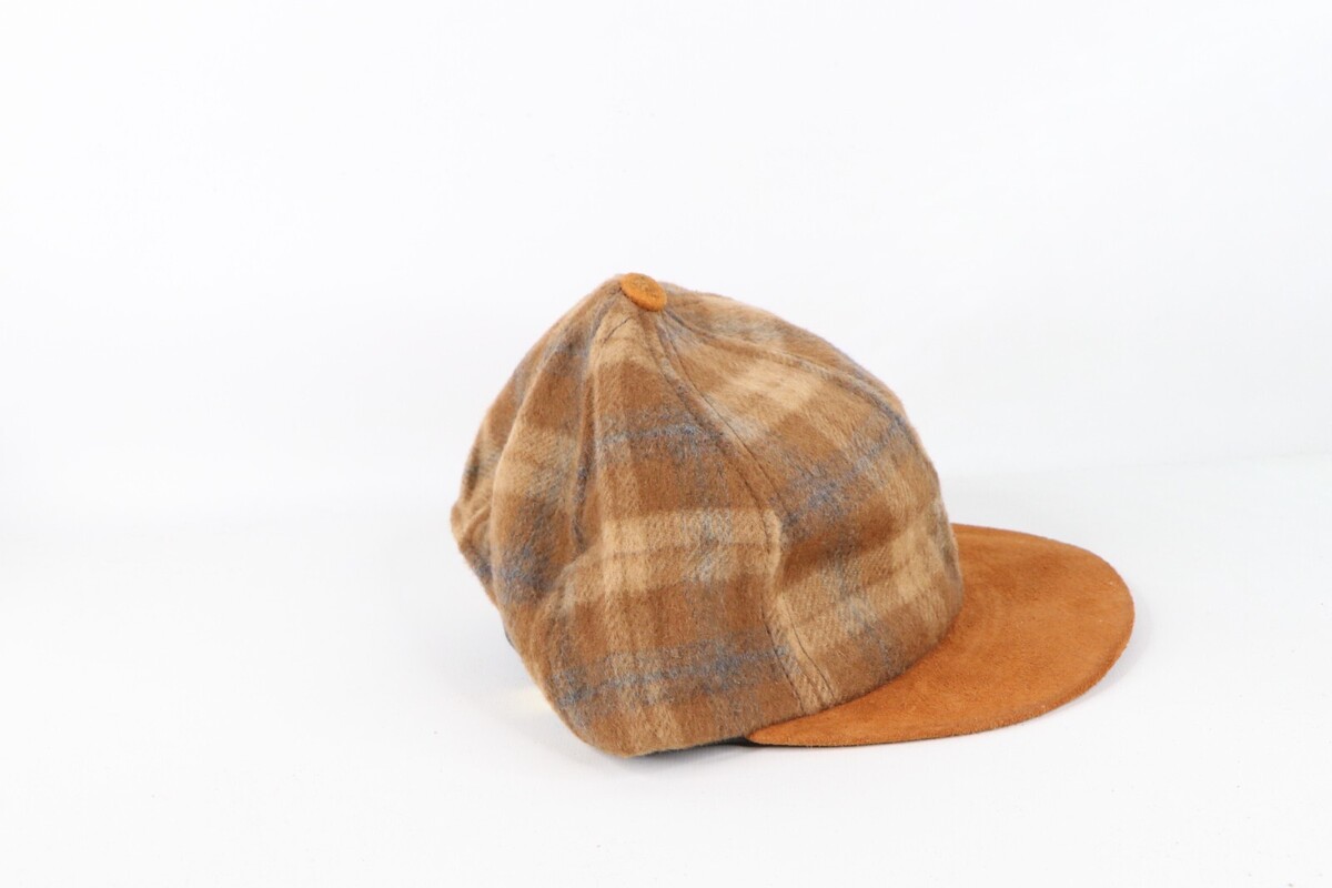 NOS Vtg 90s Streetwear Youth Blank Suede Wool Short Brim Strapback Hat Cap Plaid