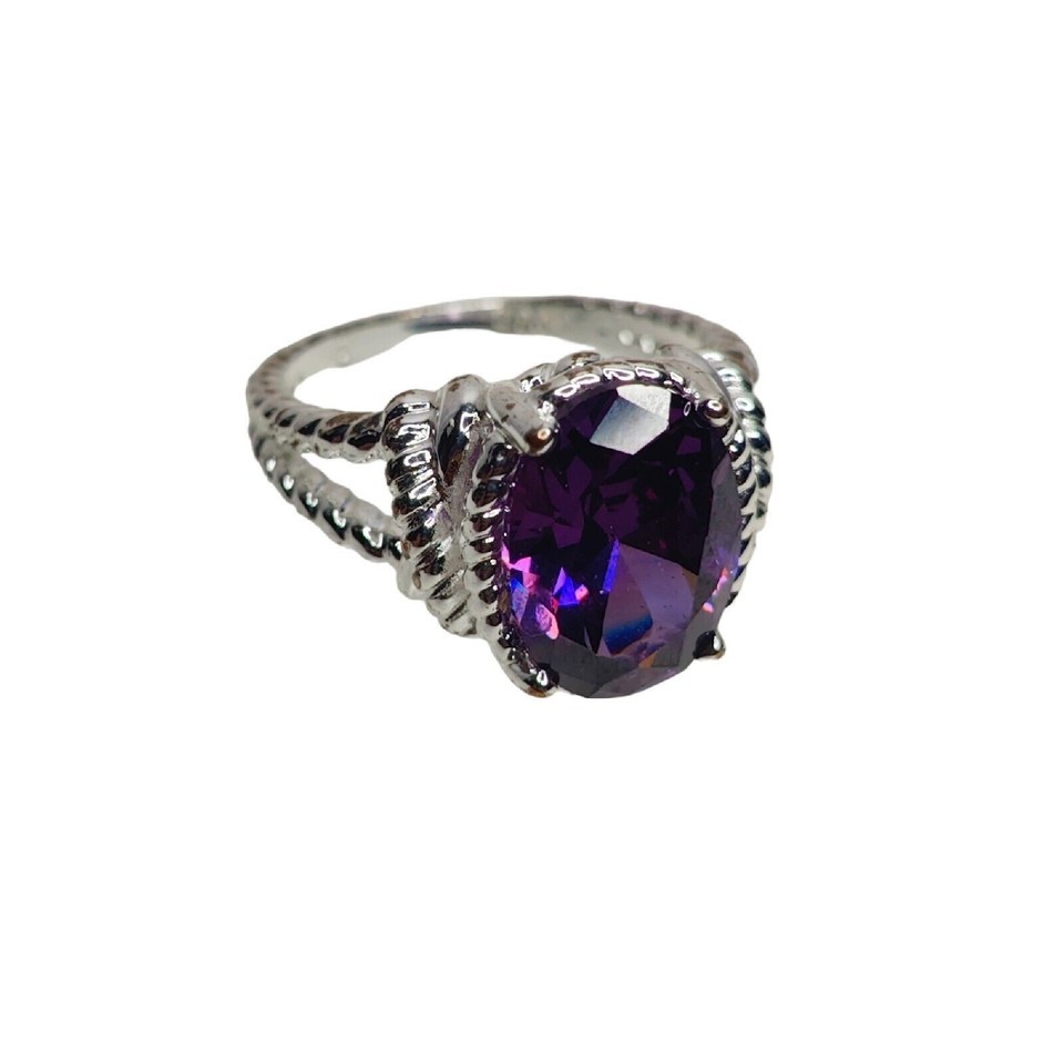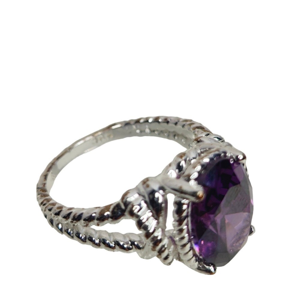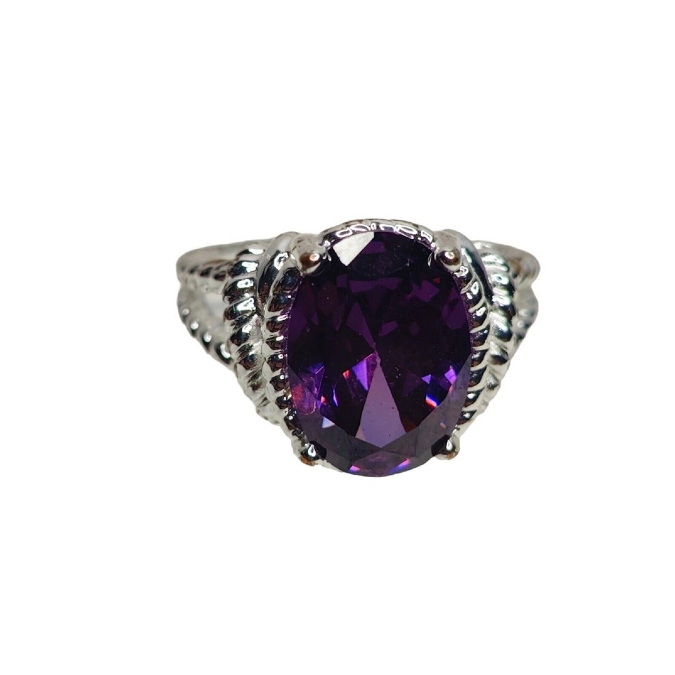 - NVC Silver Tone Women's Cocktail Ring with Round Cut Purple Stone Faux Amethyst