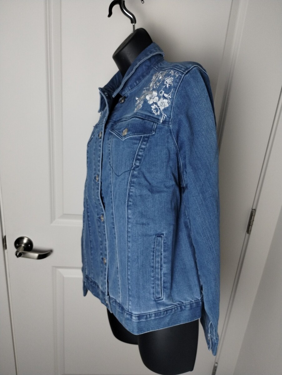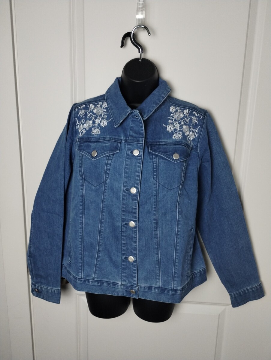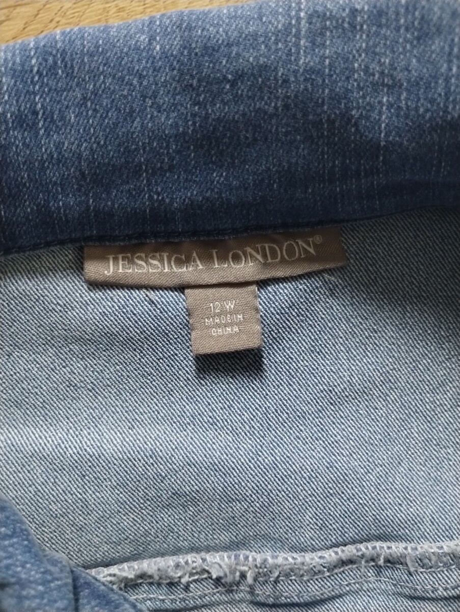 - NWOT Jessica London Womens Blue Size 12 Classic Button Denim Jean Jacket Stretch