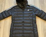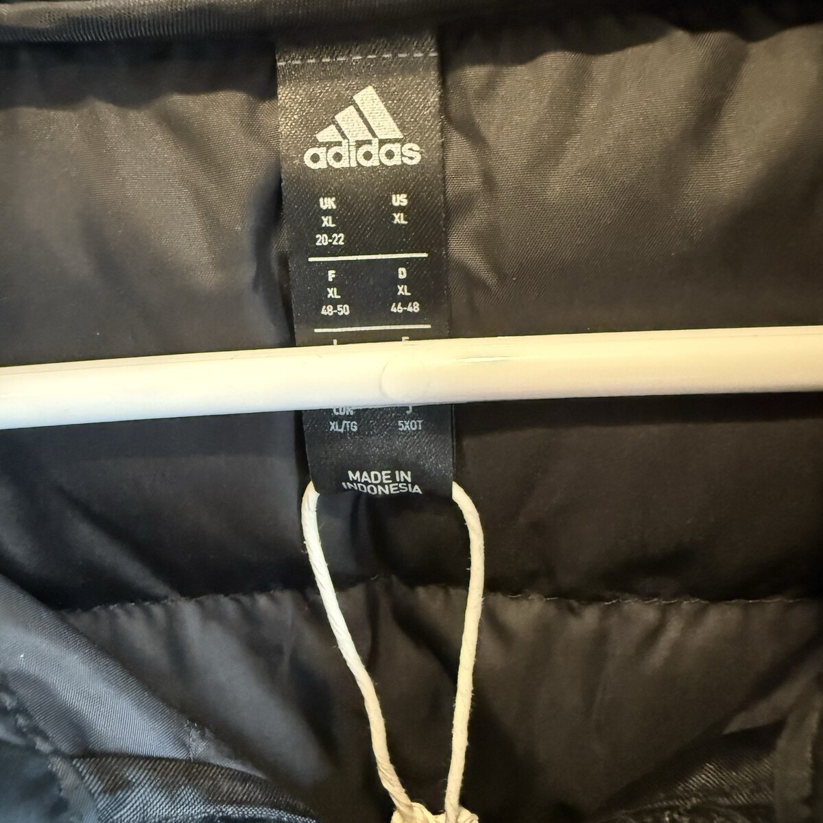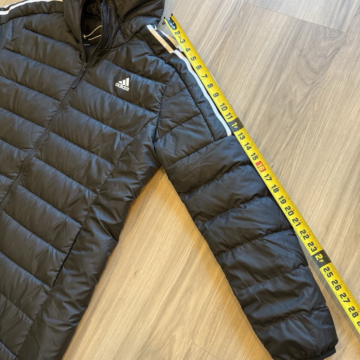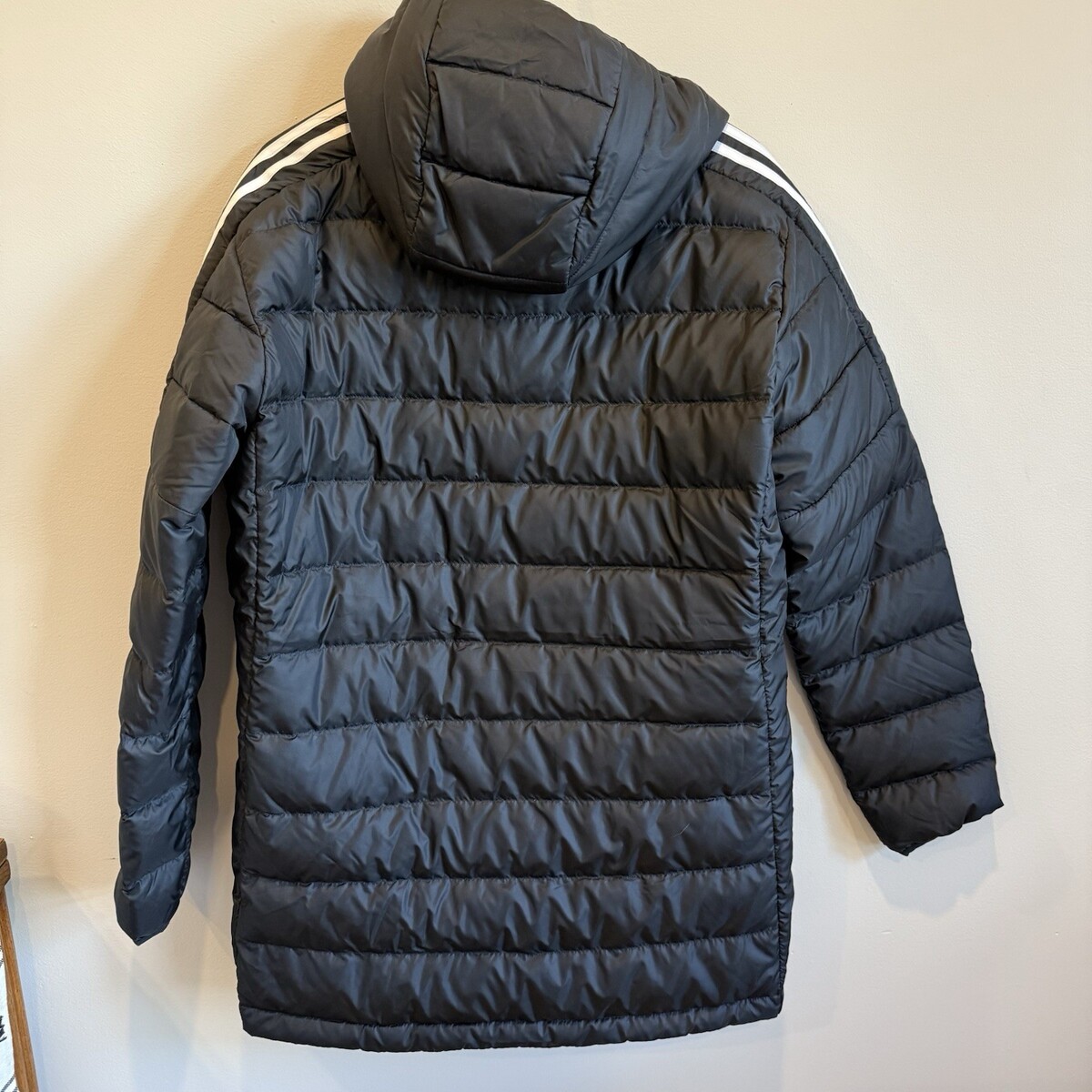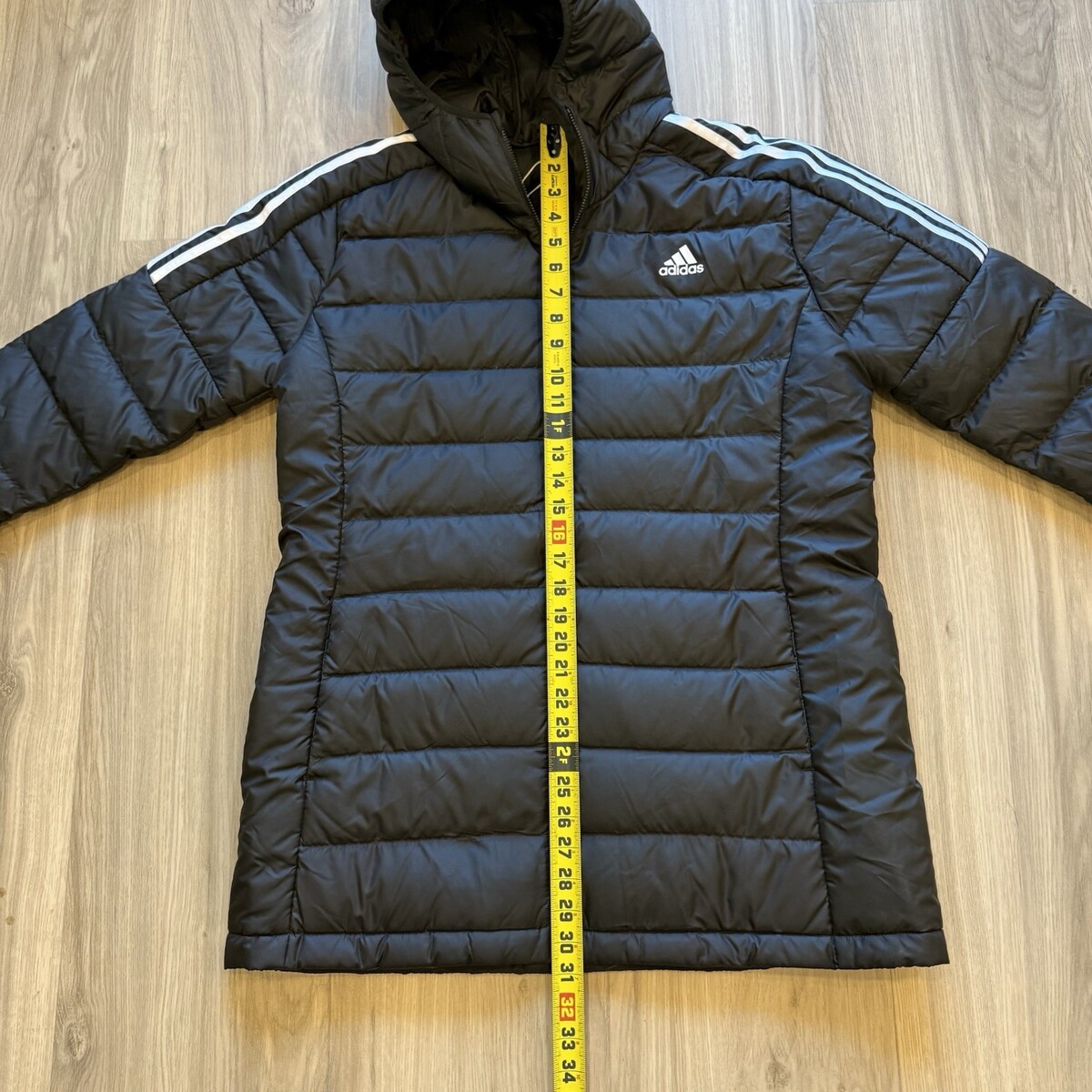 - NWT Adidas XL Real Duck Down Puffer Coat Jacket Black Long Lightweight Hooded