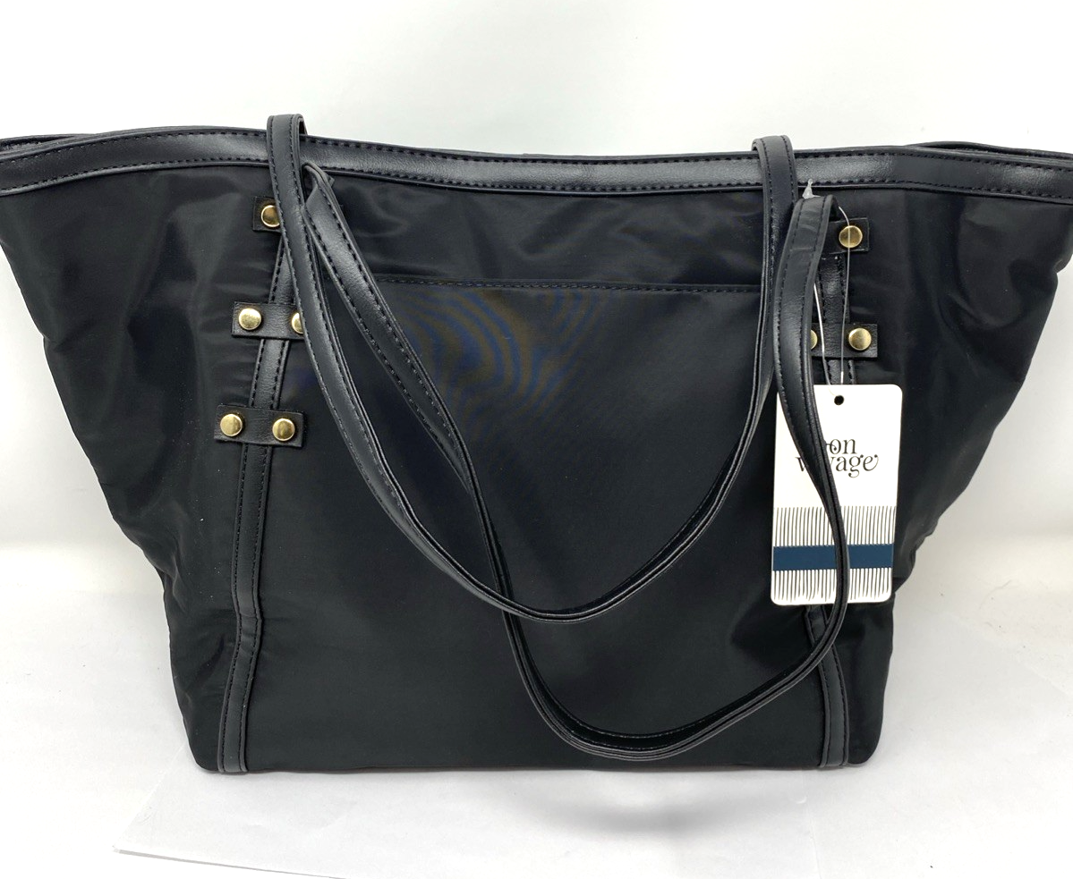 - NWT Bon Voyage Black Nylon Tote Lined Magnetic Closure Shoulder Straps Medium