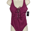 NWT California Waves Lace Up One Piece Swimsuit Size Medium Purple Ribbed