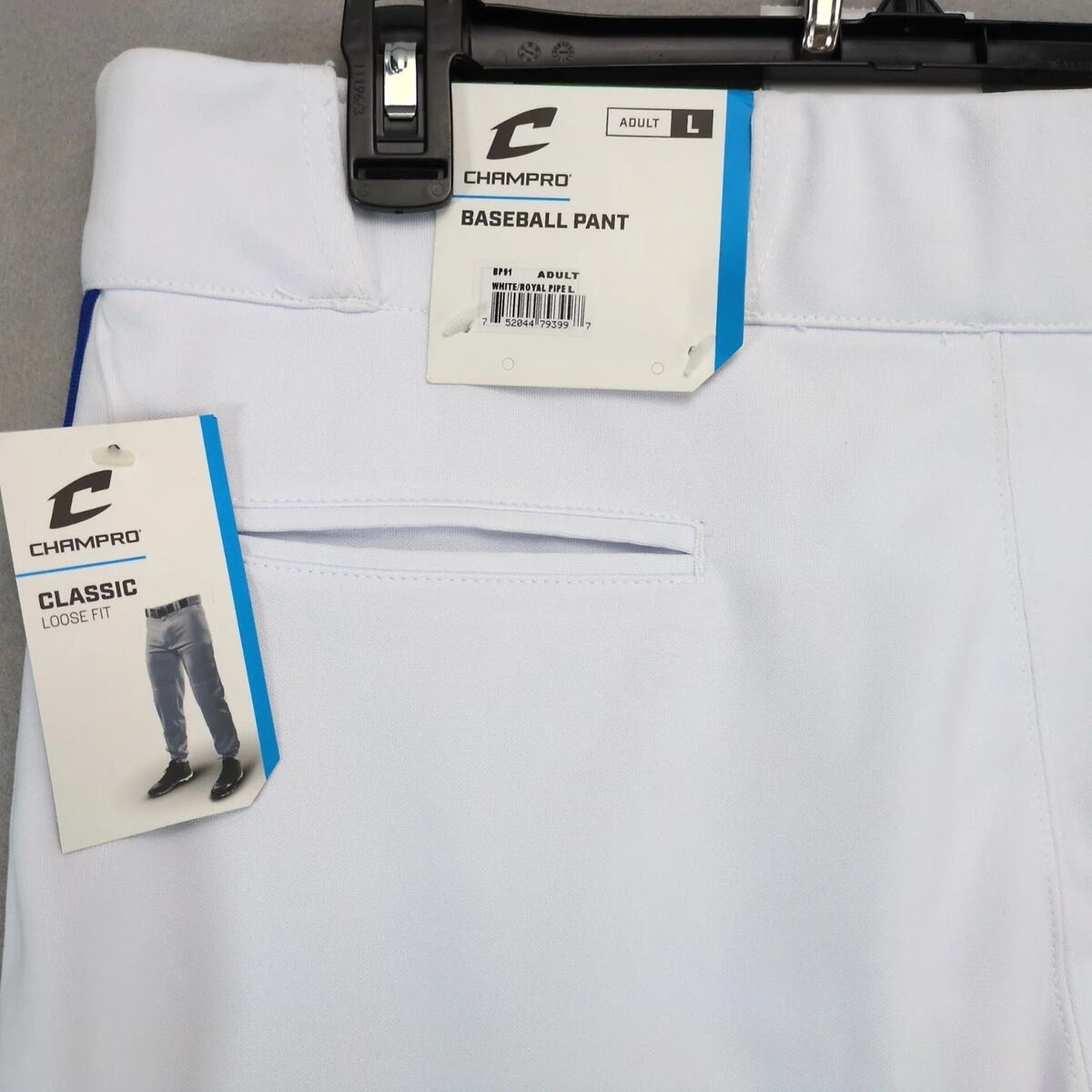 - NWT Champro Classic Baseball Softball Pants Men's L Loose Fit White Blue Stripe