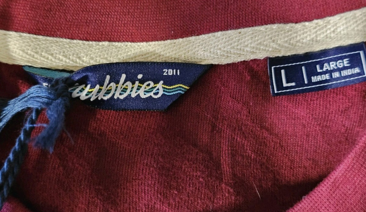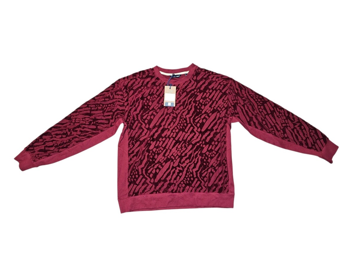 The NWT Chubbies The Thereafter Crewneck Sweater in Men's size Large is a stylish and versatile pullover sweatshirt featuring a crew neck design. Made from a comfortable cotton blend fabric, this sweater is perfect for all seasons with its geometric pattern and embroidered logo accents. The classic red color and beach-themed design make it a great choice for various activities such as gym training, walking, golf, hunting, skateboarding, and hiking. Machine washable for easy care, this Chubbies sweatshirt is a must-have for any man looking for a trendy and cozy addition to their wardrobe.