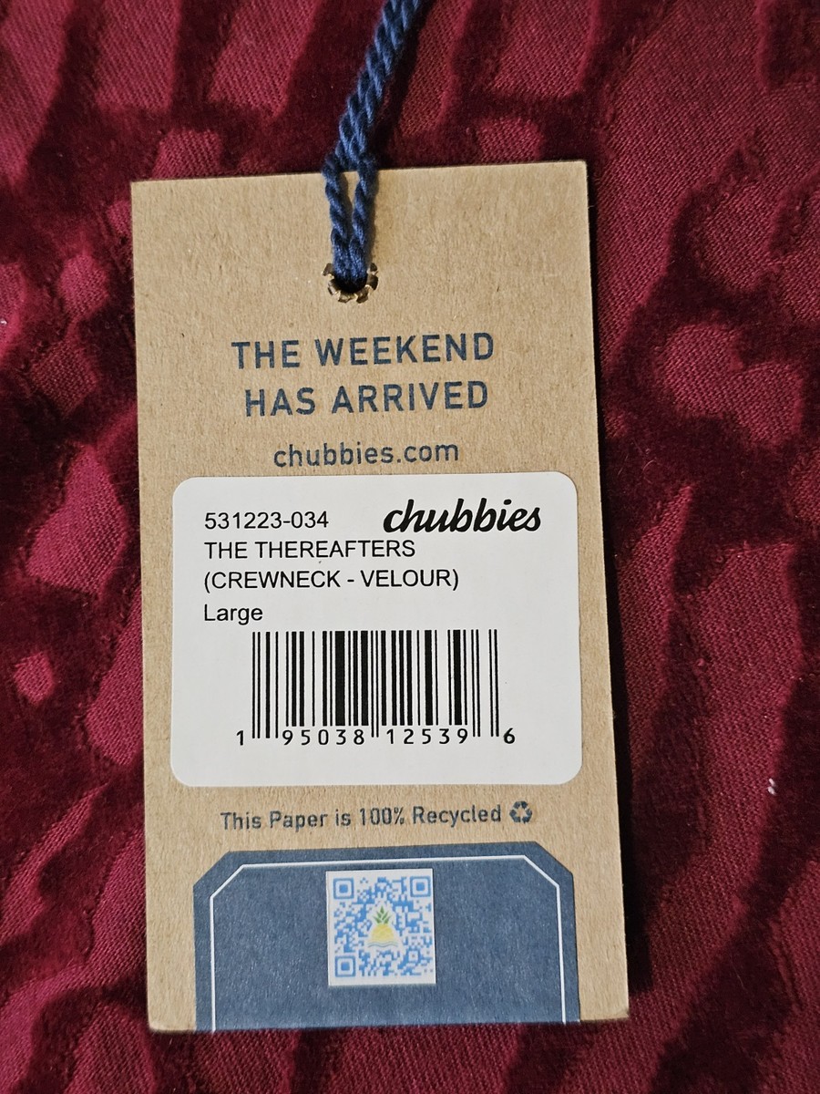 - NWT Chubbies The Thereafter Crewneck Sweater Velour Men's Size Large