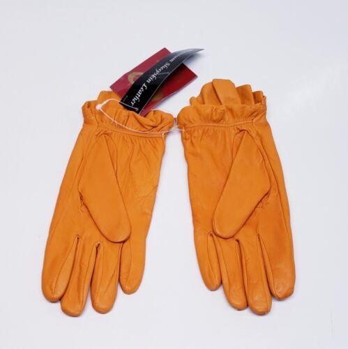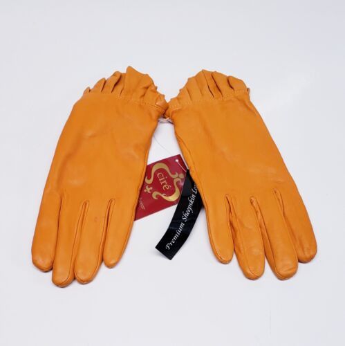 - NWT Cire by Grandoe Sheepskin Leather Orange Goldenrod Womens Gloves -XL