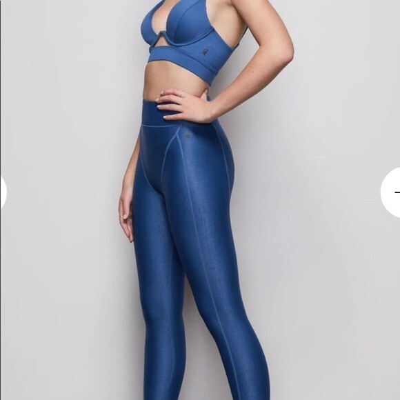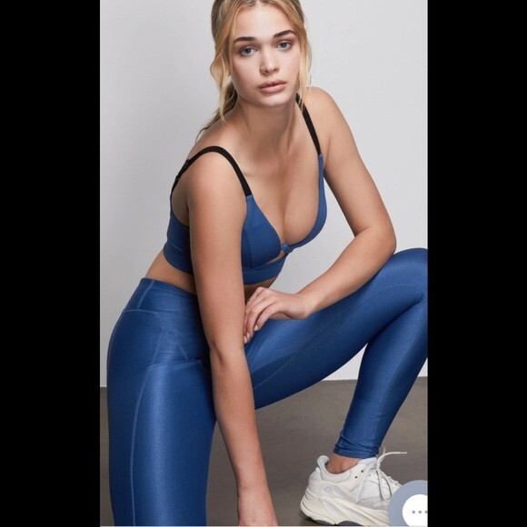 - NWT GOOD AMERICAN 3 L Rib Seam Leggings blue workout casual athletic shiny