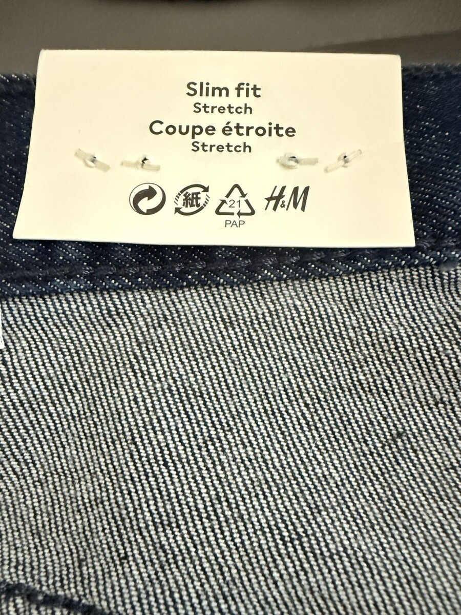 NWT H&M Men's 42 X 32 slim-fit blue jeans stretch dark Coupe e'troite big