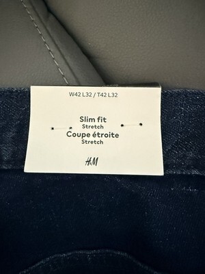 - NWT H&M Men's 42 X 32 slim-fit blue jeans stretch dark Coupe e'troite big
