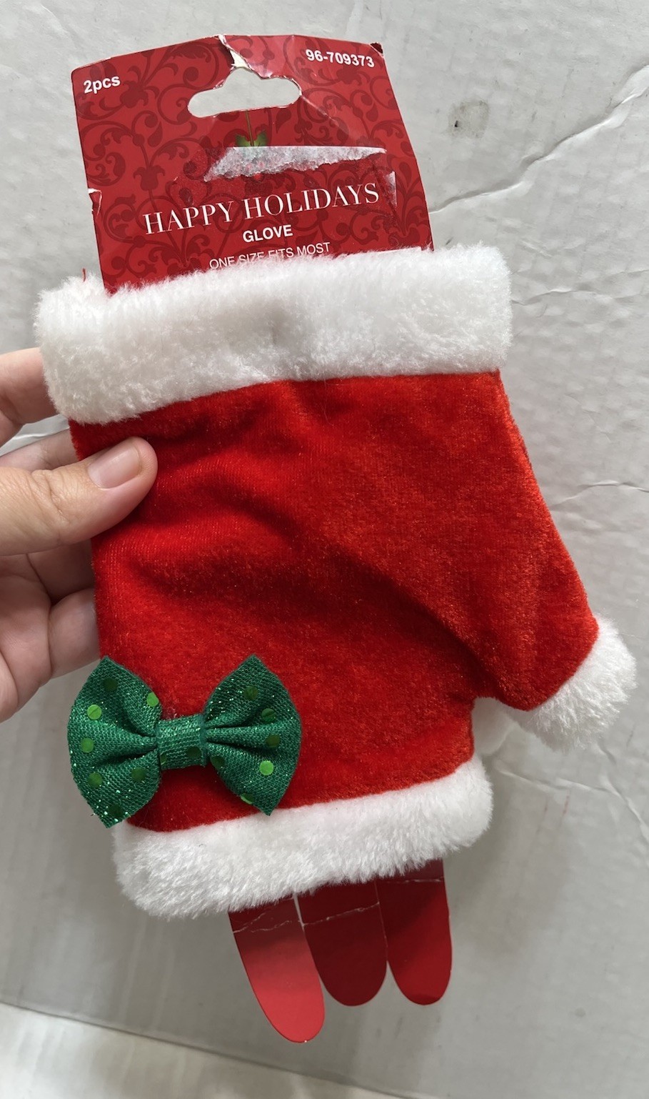 This product is a set of NWT Ladies Festive Christmas Holidays Mrs. Santa Claus Red Fingerless Gloves. The gloves are one size, red in color, and feature a fingerless style perfect for the winter holiday season. These gloves are designed for women and have a Christmas theme. These gloves are ideal for adding a festive touch to any Christmas or winter outfit. Please let me know if you have any questions!