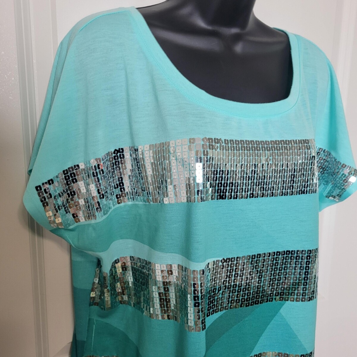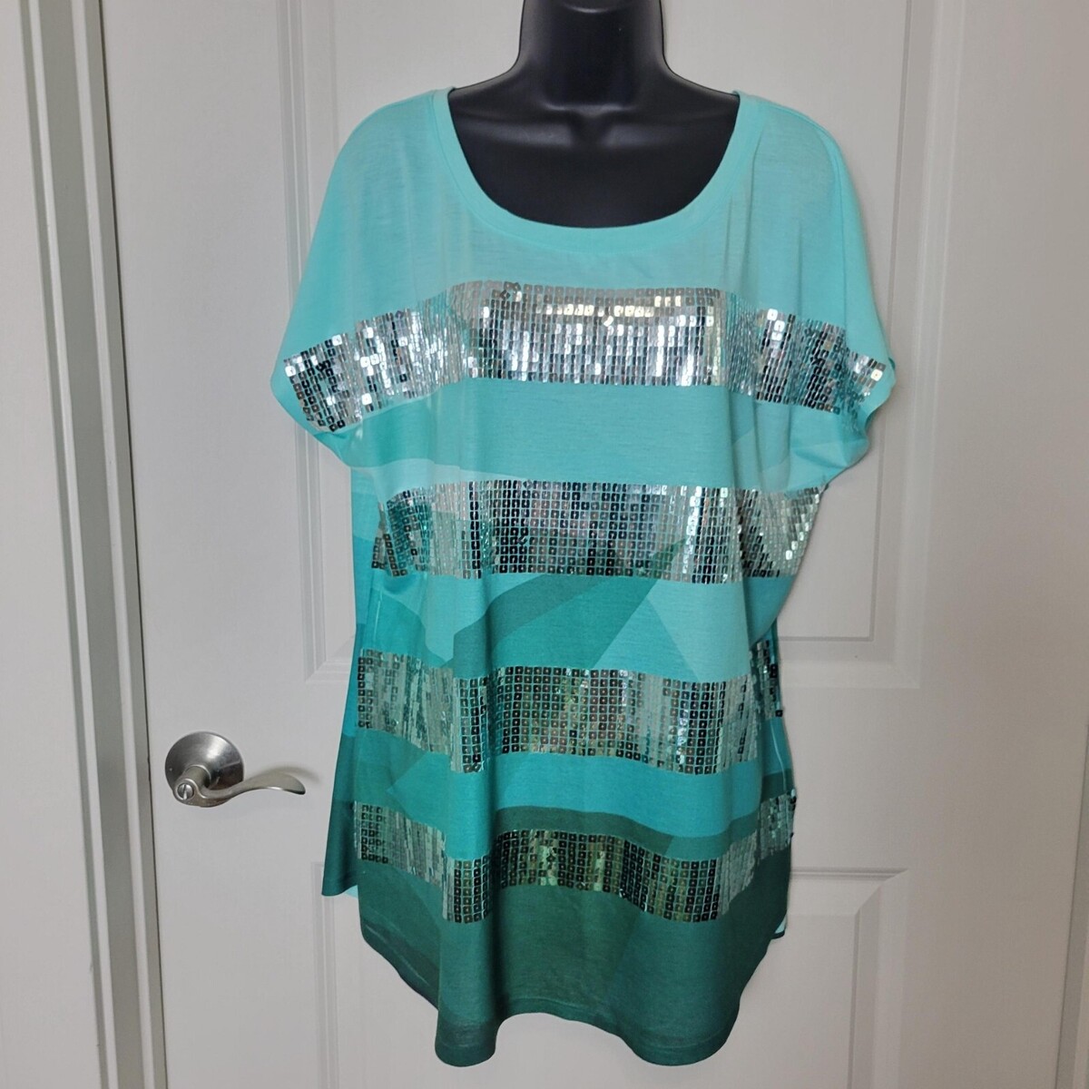 - NWT Lane Bryant Top Womens Size 18 20 Watercolor Sequin Accent T Shirt Blouse