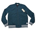 Brand new with tags. This is a Men's Five Four Burnaby Bomber Jacket. Size Small. Measures approximately 21 inches flat across the chest from armpit to armpit well zipped and measures approximately 26 inches from shoulder to bottom hem. Teal and white. Retro look. New With Tags.