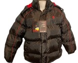 NWT Men's Swiss Cross Fleece Lined Hooded Puffer Jacket Black/Red Size L