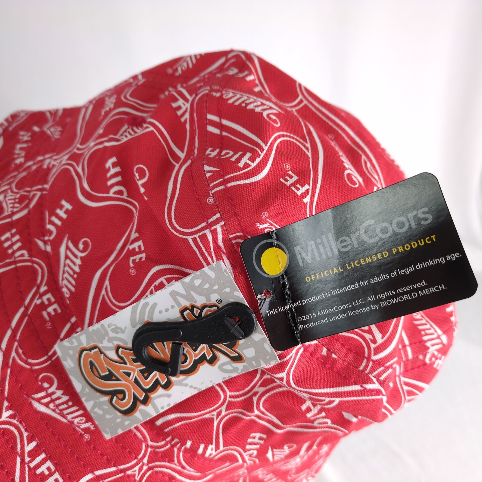 - NWT Miller High Life Logo Red Cotton Bucket Hat OSFM Spencer's Party Streetwear