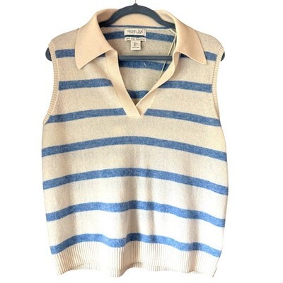 - NWT Rachel Zoe Two-Ply Cashmere Sweater Vest Blue Cream Stripe