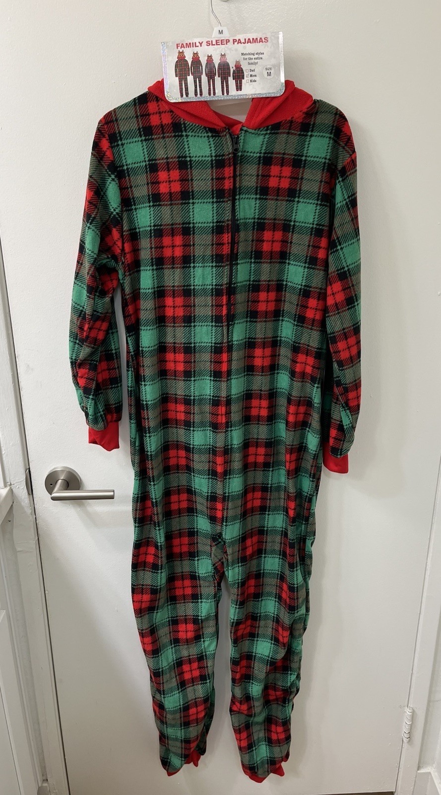 This NWT Rudolph The Red Nosed Reindeer One Piece Hooded Pajamas in size M is a cozy and stylish addition to any woman's sleepwear collection. Made in a vibrant red and green plaid pattern, these long sleeve pajamas feature a hood and zipper closure for added comfort and convenience. With the iconic Rudolph character design and perfect for the winter season, these pajamas are sure to bring both warmth and charm to your bedtime routine. Please let me know if you have any questions!